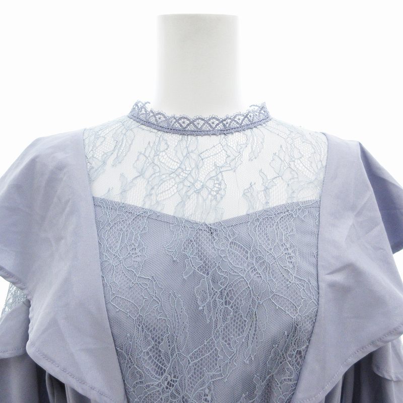 マーキュリーデュオ MERCURYDUO ワンピース レース切替 プリーツ ウエスト紐 長袖 ひざ丈 S 青 ブルー /FF レディース