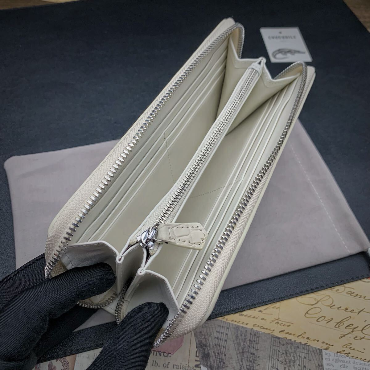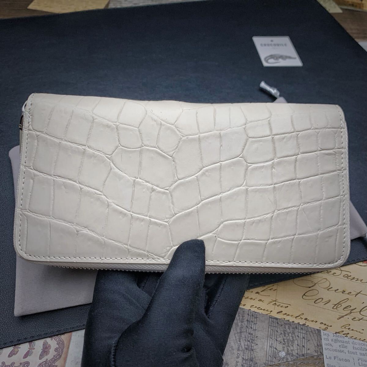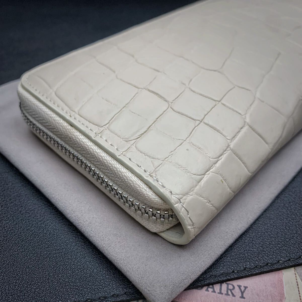 ・クロコダイルと呼ばれている品種のワニ革は人気が高く、独特の模様と凹凸が魅力で、高級ブランド品を中心にクロコダイルが多く使われています。今回はワニ革の代表格である『シャムクロコダイル』のセンターカット腹革のラウンドファスナー財布を出品します。