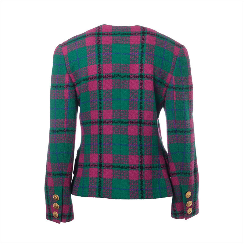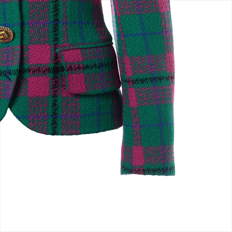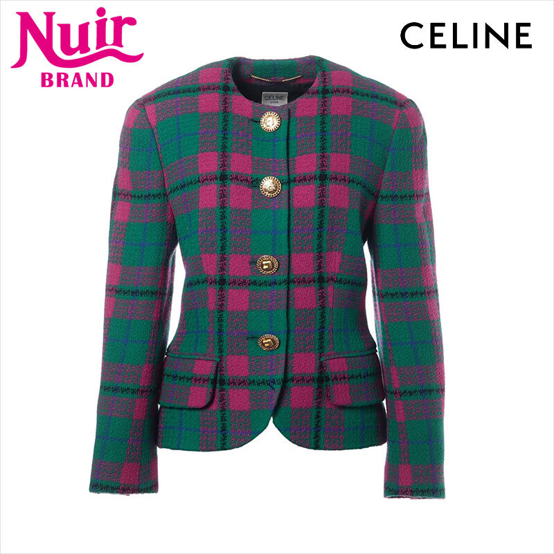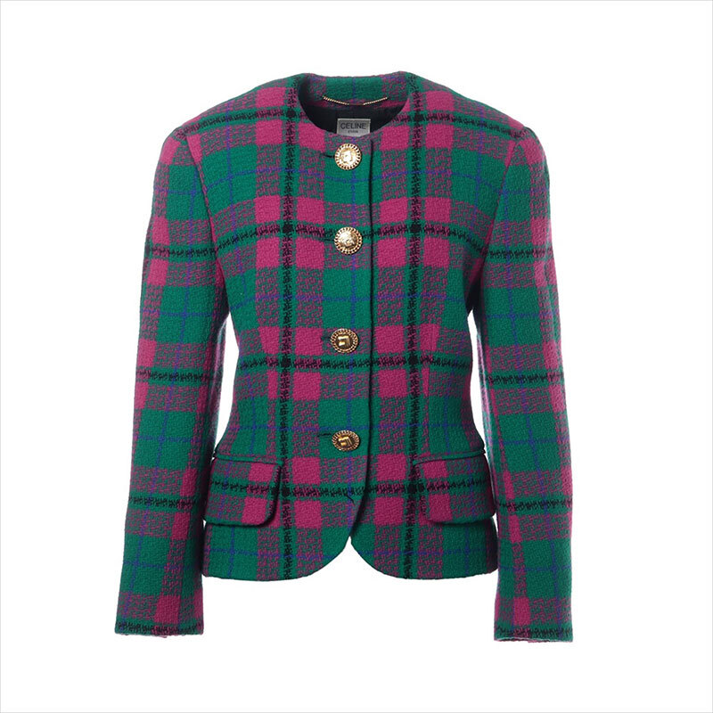 セリーヌ CELINE ジャケット チェック ゴールドボタン グリーン