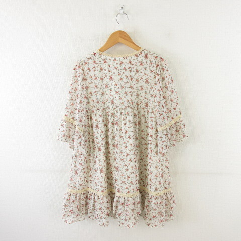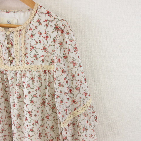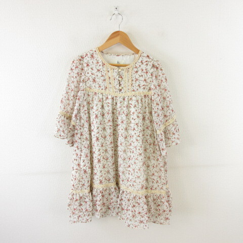 クミキョク 組曲 KUMIKYOKU フレアワンピース 七分袖 レース 花柄 ひざ丈 オフホワイト 赤 LL *A348 キッズ