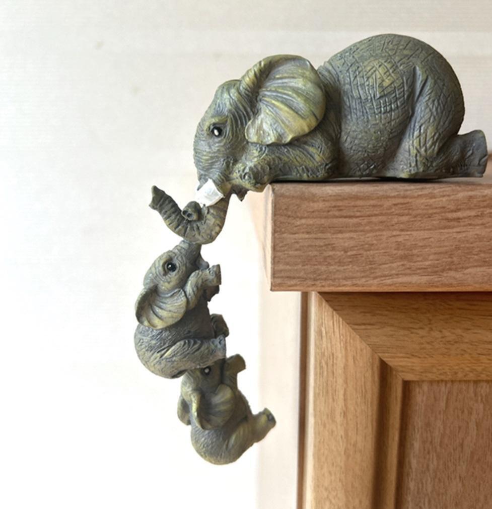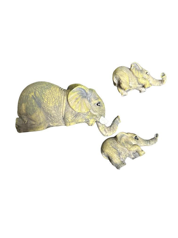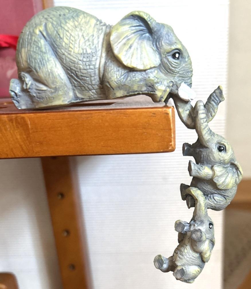 象のお母さんに、ぶらさがっている子象達、とてもお茶目で可愛い、レトロな象の親子の置物です。