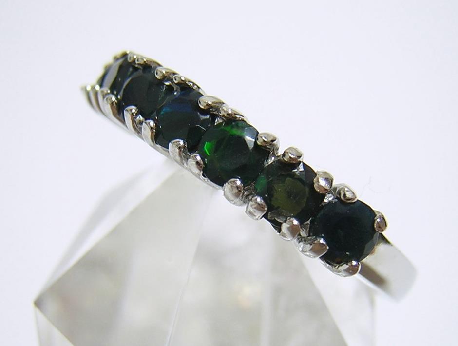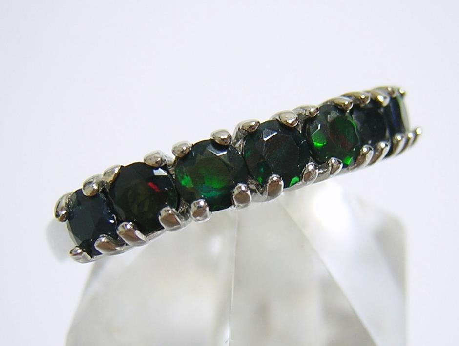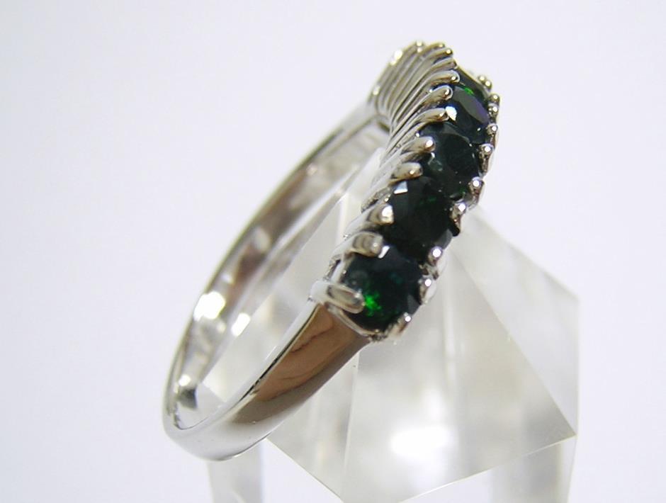 エチオピア産の天然オパールを使用したデザインリングです。 オパールの大きさは約3mmです。 【石名】天然オパール 【産地】エチオピア産 【処理】スモーク処理 【カット】ラウンドファセットカット 【重さ】3.3g 【サイズ】18.75号 (お直しは承れません) デザイン部:縦3.5mm×横22mm 【素材】シルバー925 (14金ホワイトゴールド仕上げ) 【刻印】925 【状態】新品 ※地金部分に製作時からの微細な小傷やスレがあります。 |