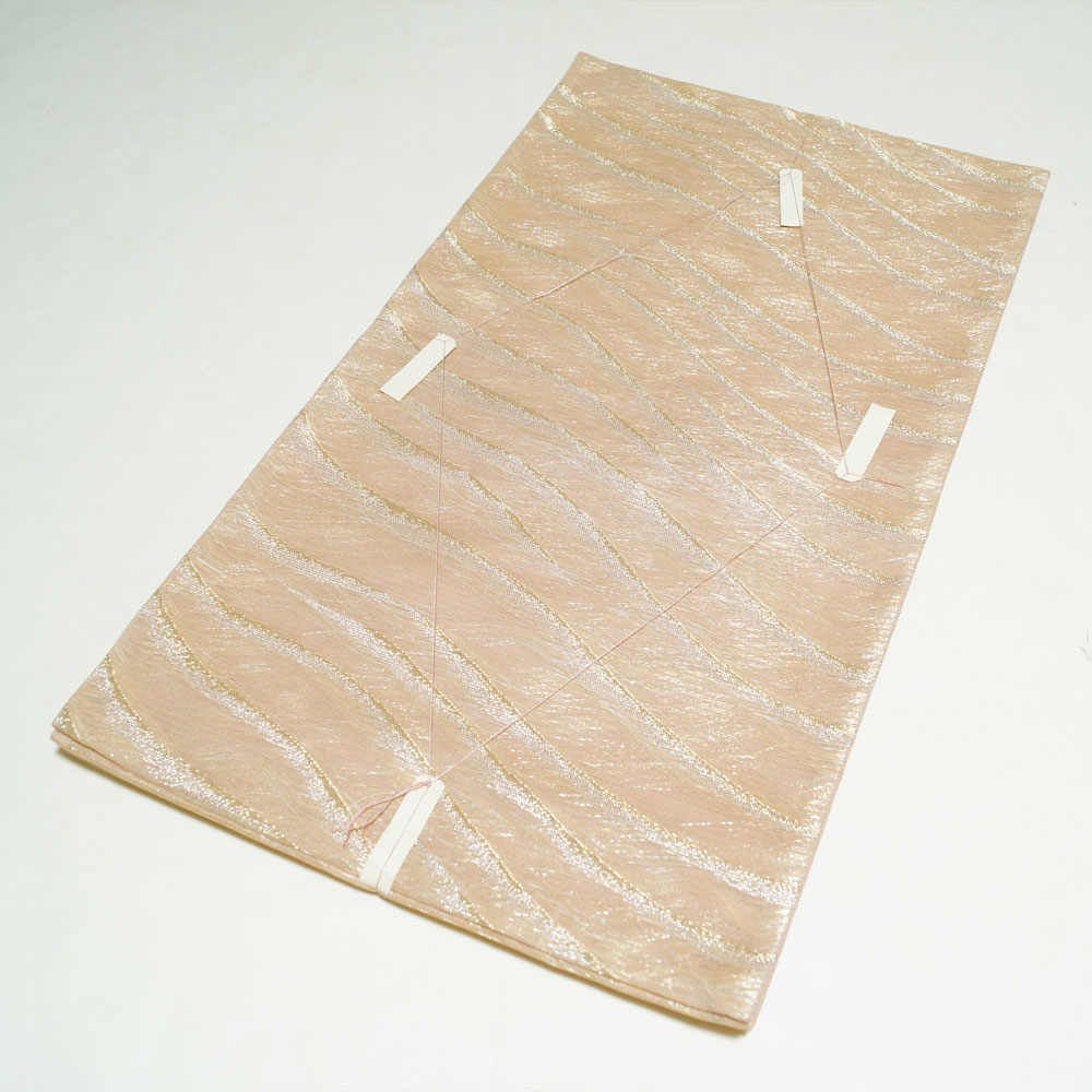 | 商品 説明 | 落ち着いたピンクベージュ色系の絽地に、金銀糸の波頭模様が織られた夏の袋帯です。 中抜き部にも模様がありますが、中抜き部のみ銀糸の波頭模様になっているという凝った作りになっております。 |
