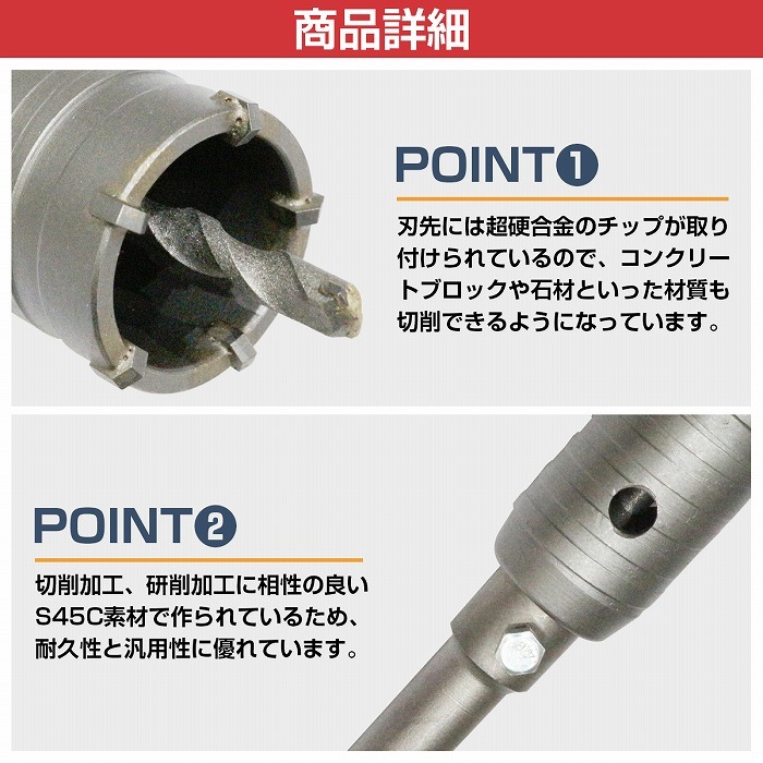 レンガ、ALC、日本壁などの穴あけができるコアドリルです。