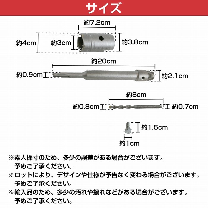 【セット内容】コアドリル本体、シャンク、センタードリル、ナット