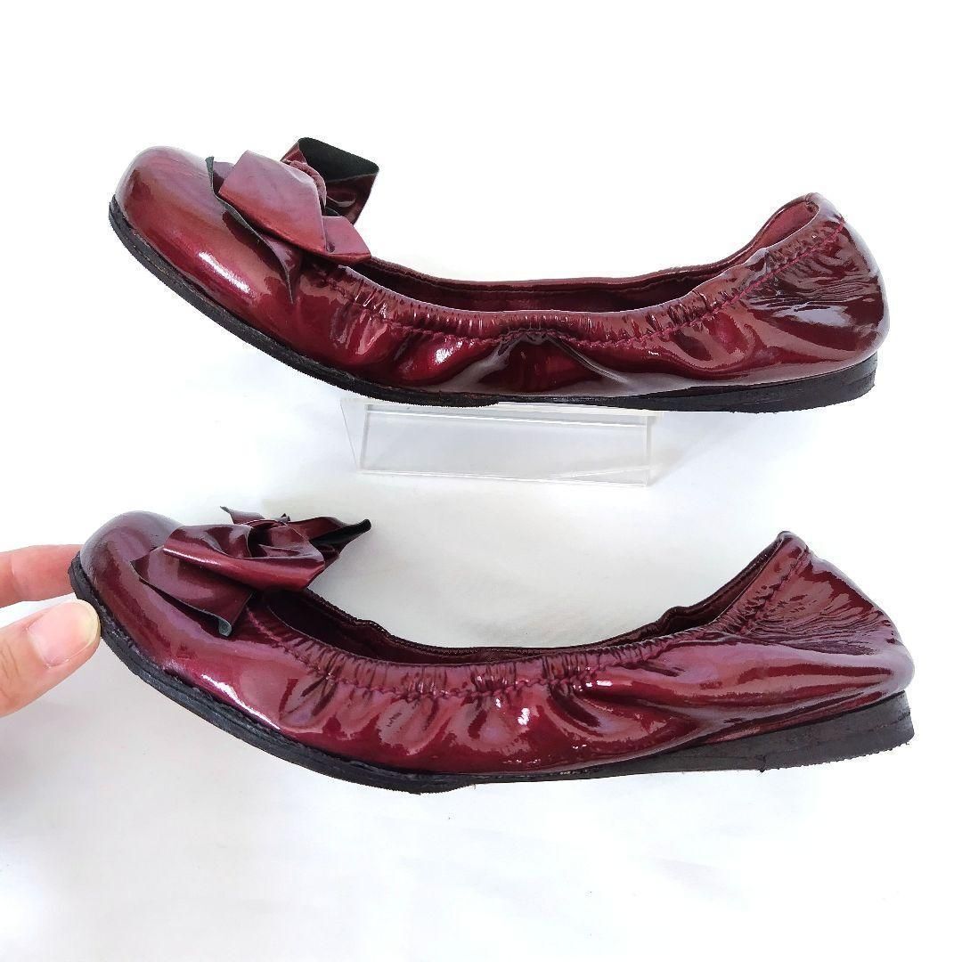 控えめな艶のエナメルのボルドーがおしゃれ。