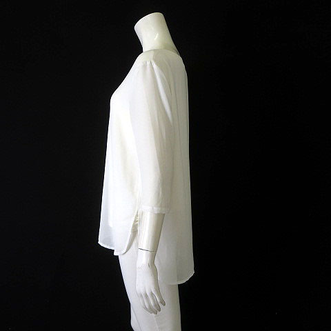 マウジー MOUSSY ブラウス シアー シフォン 落ち感 とろみ プルオーバー Vネック ロングテール 7分袖 F アイボリー オフ白 レディース
