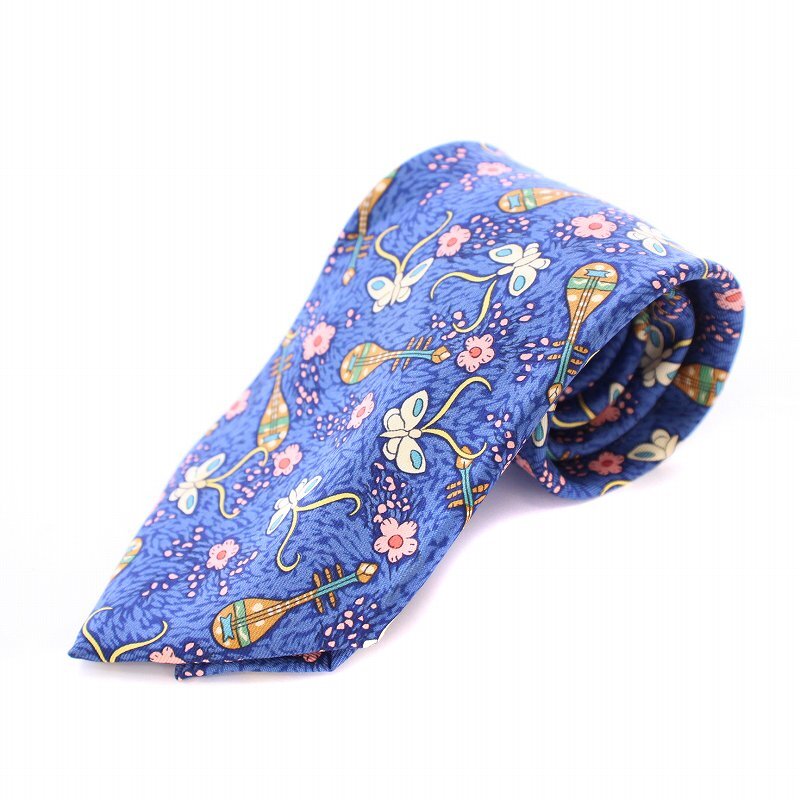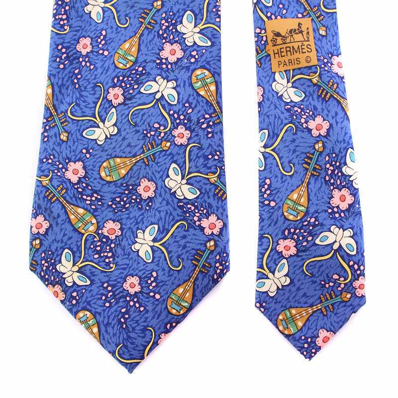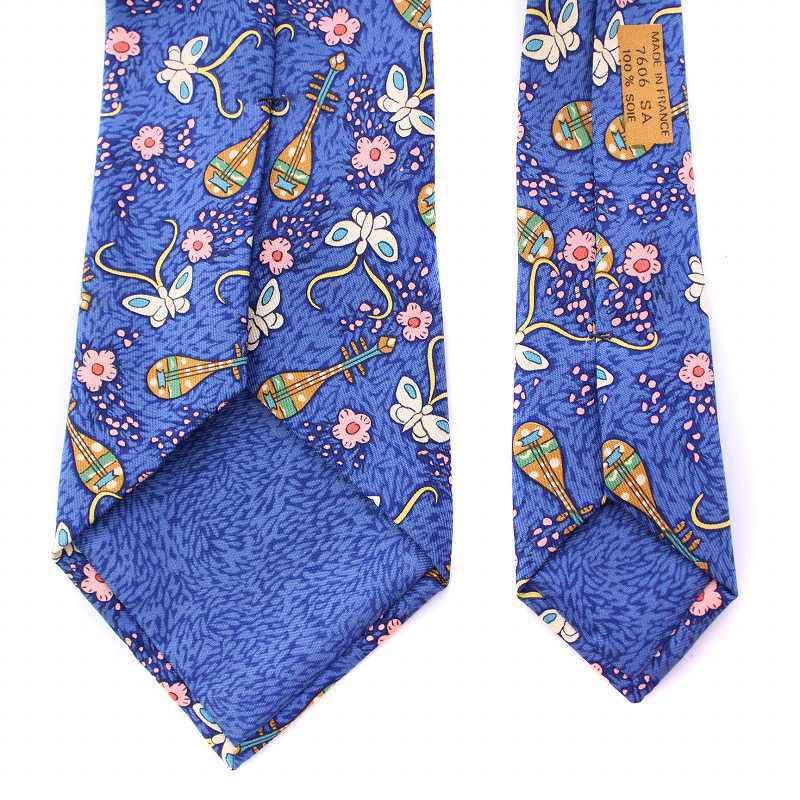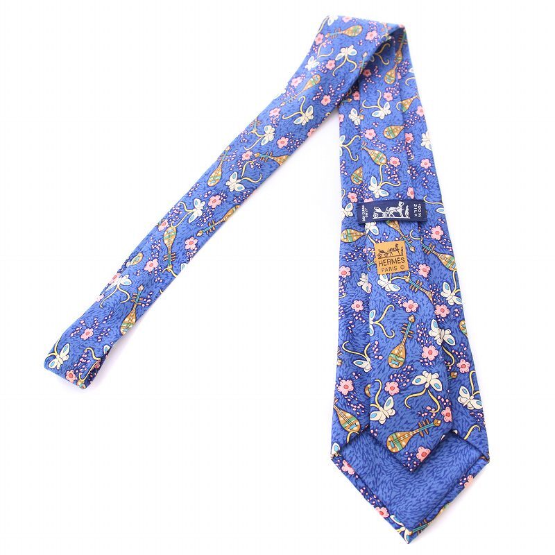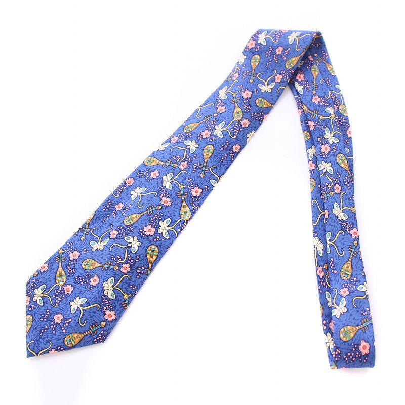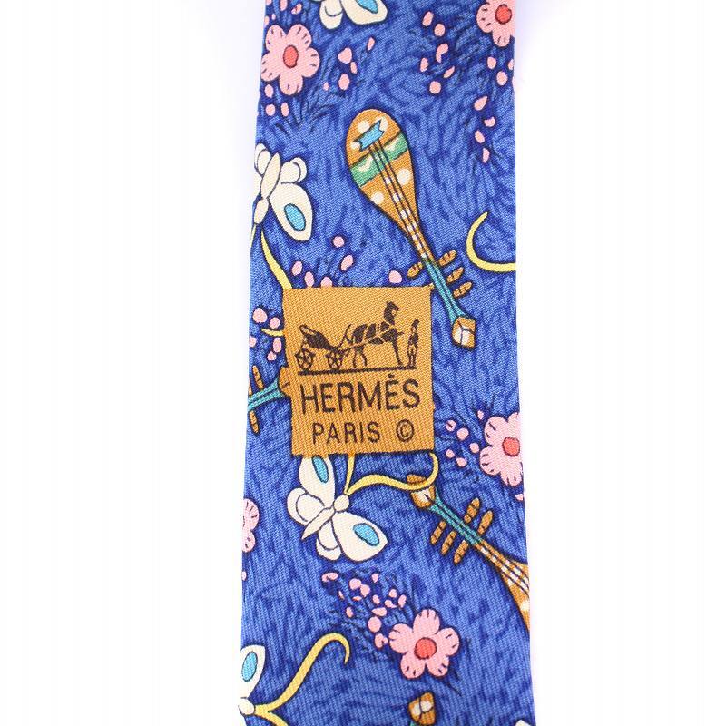 エルメス HERMES ネクタイ レギュラータイ シルク 花柄 総柄 青 ブルー /BB ■OH ■GY14 メンズ