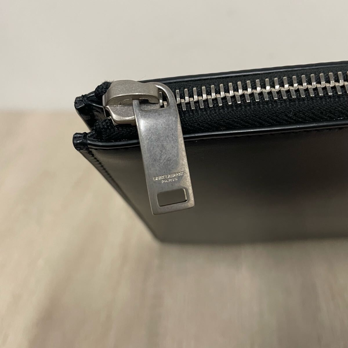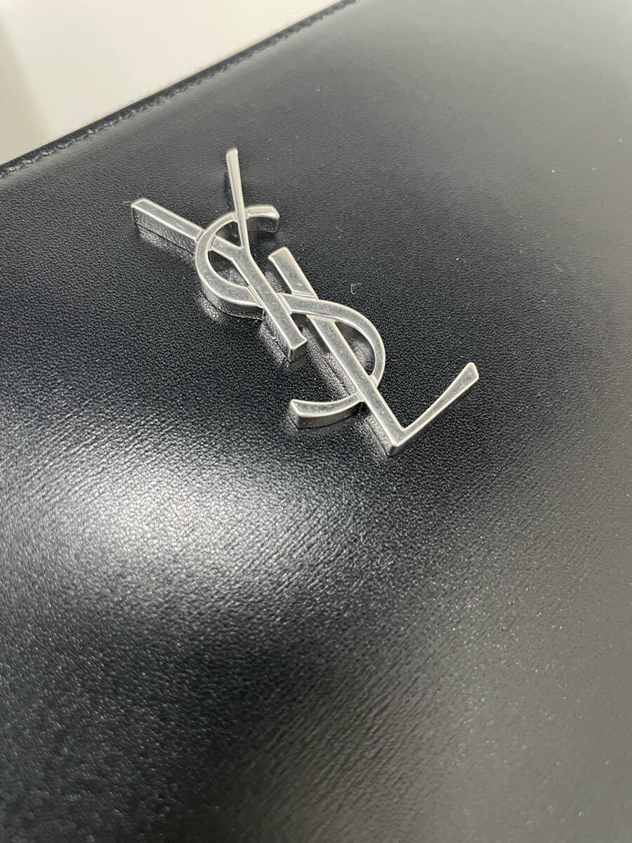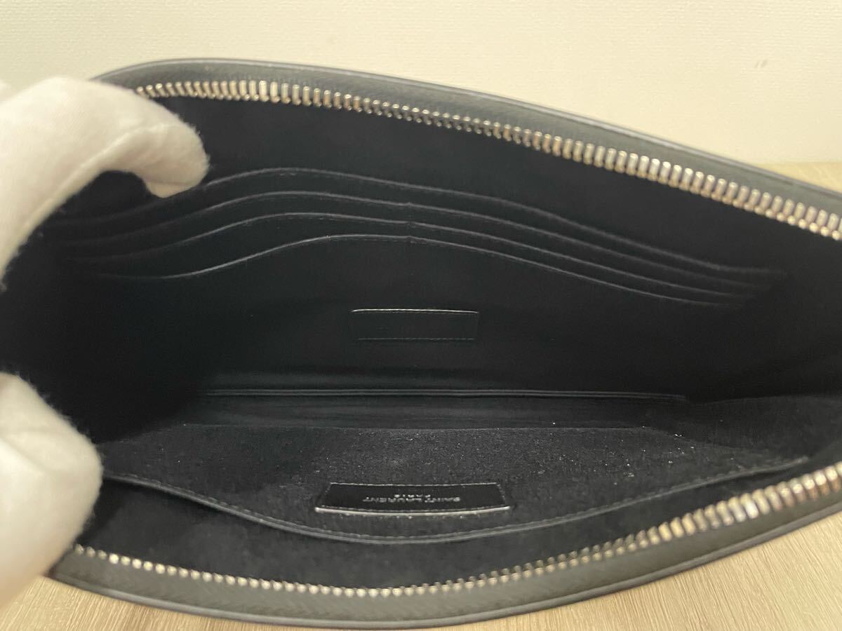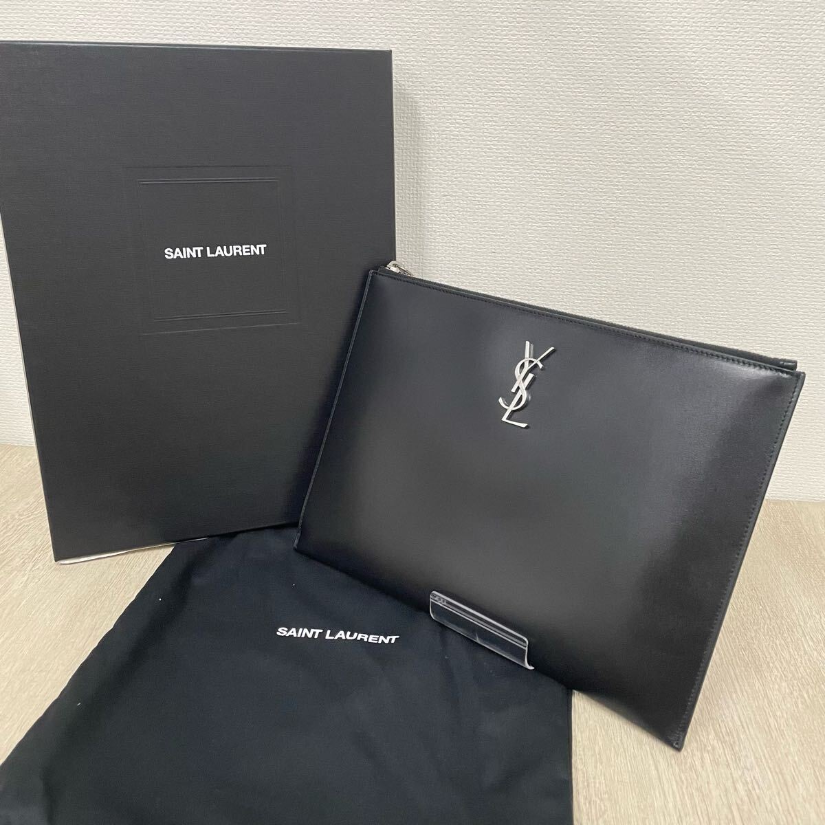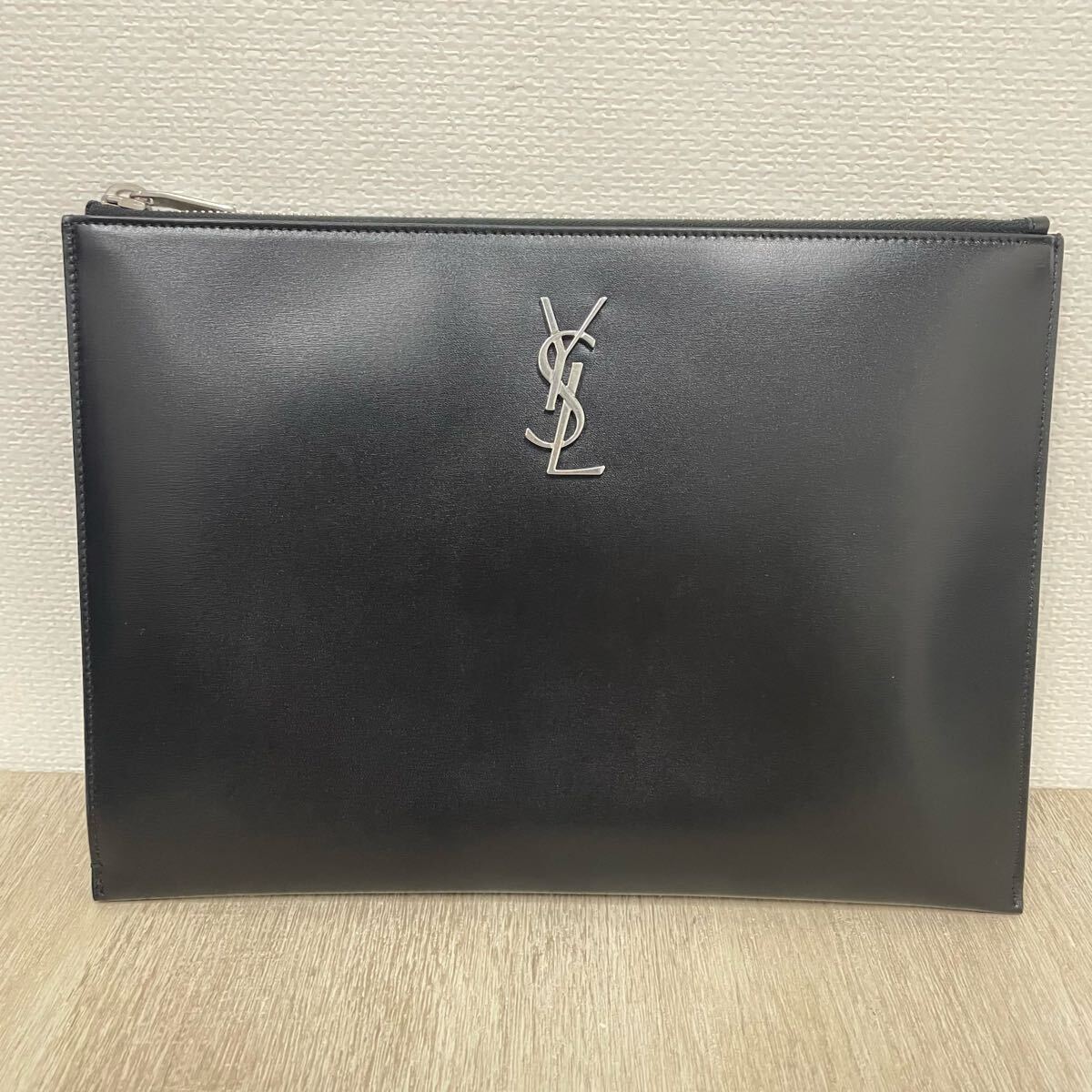 箱付き★【YVES SAINT LAURENT】イヴ・サンローラン★セカンドバッグ クラッチバッグ ポーチ YSLシルバー金具 レザー