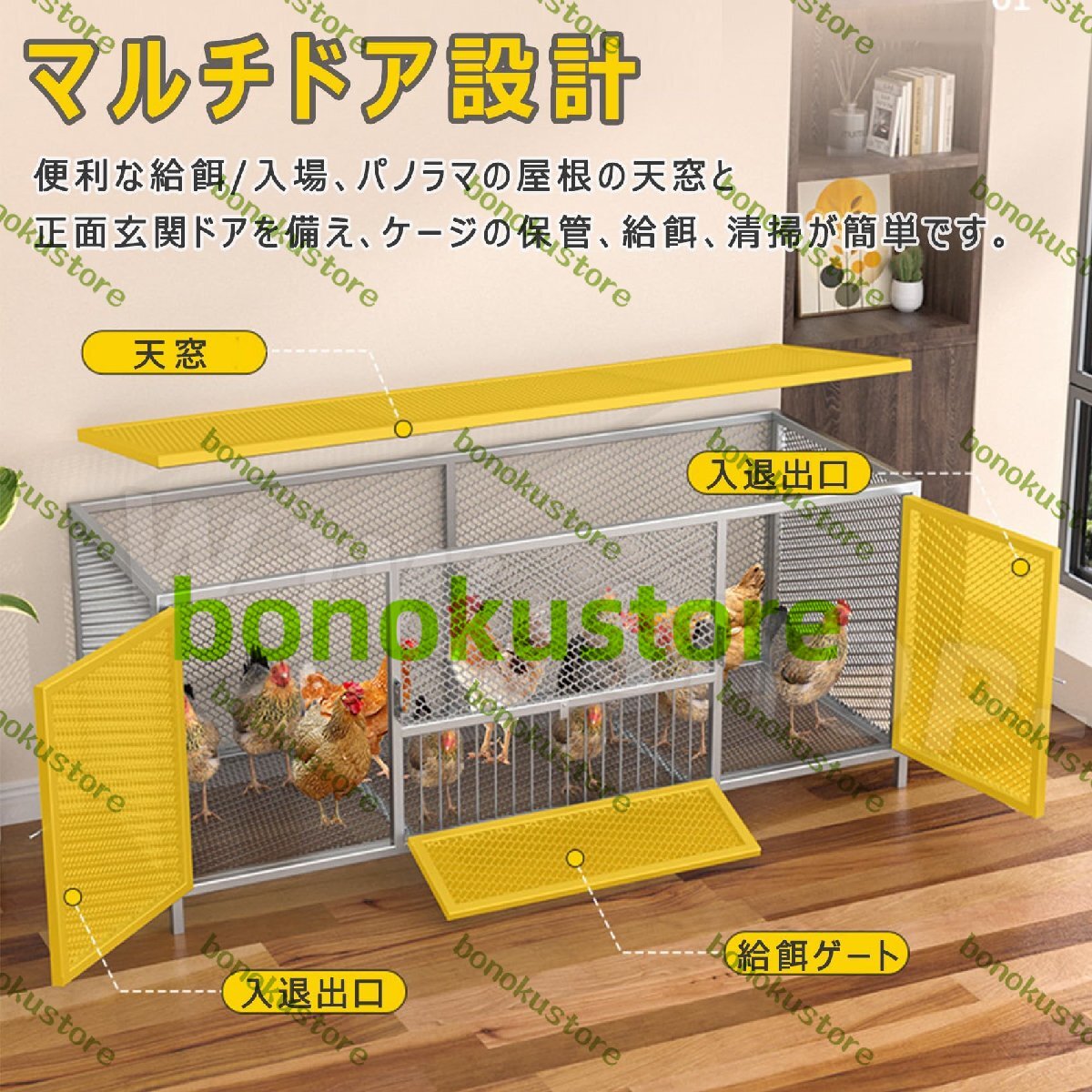 鶏 ケージ 室内 屋外 うずら 鶏小屋 大型角管高密度メッシュ 天窓付き マルチドア設計 大きい 鶏舎 鳩小屋 小動物 モルモット 兎 フェレットケージ ハリネズミ 飼育小屋 農村ルチンケージ イタチ防止 ペットケージ ブラック 150*58*60