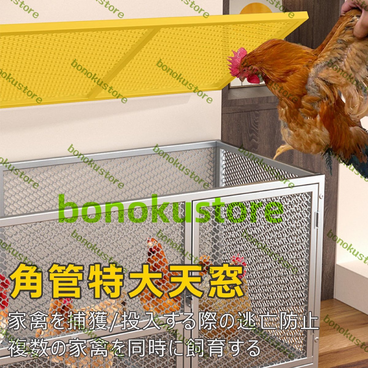 【特大飼育スペース】:広々とした空間設計により、家禽の過密を避け、複数の種類の家禽を同時に飼育することができます。上部の特大コーナーチューブ天窓は、家禽を捕獲または放すときに逃げるのを防ぎ、飼育の効率を高めます。
