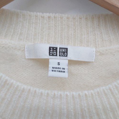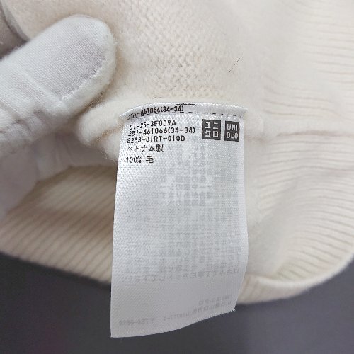 ◇ ⊇ UNIQLO ユニクロ ハイゲージ ウール100% 長袖 セーター サイズS アイボリー系 メンズ E