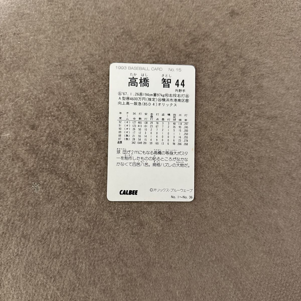 高橋智(オリックスブルーウェーブ) カルビー プロ野球チップスカード 1993 No.15 大文字版 ベースボールカードです。