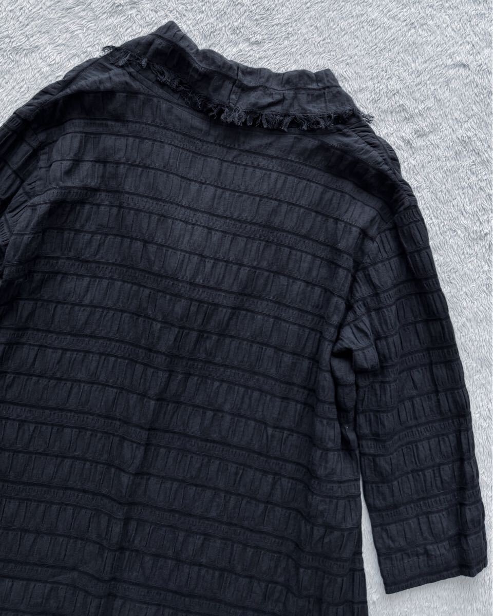 ・採寸 : 肩幅 44cm 身幅(脇下~脇下) 50cm 着丈(襟下〜裾*背中心)*フリンジは含みません。 80cm 袖丈(肩~袖口) 37cm
