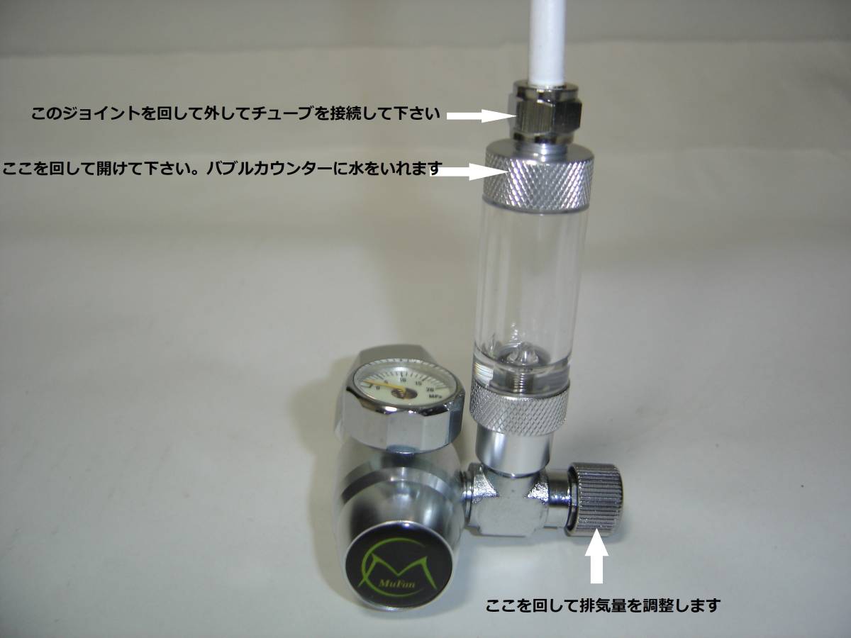 本体のバルブでCO2添加量を微調整できます。(スピードコントローラーを併用することにより、さらに細かな調節が可能です)