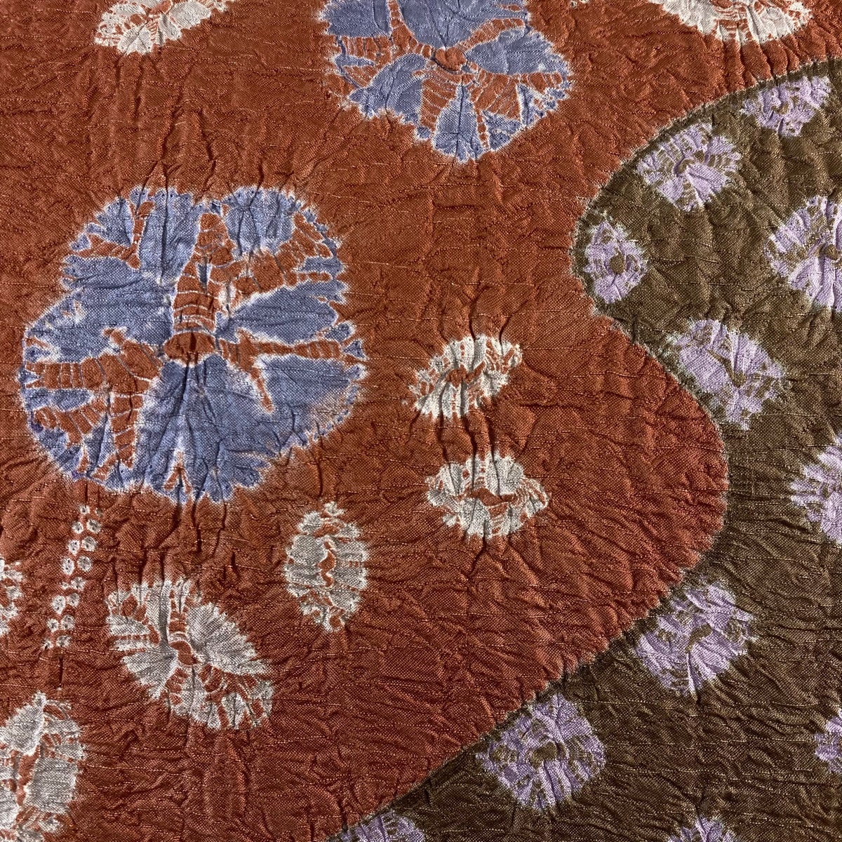 | 袋帯 美品 秀品 草花 霞 絞り 銀糸 赤茶 お太鼓柄 正絹 【中古】 |