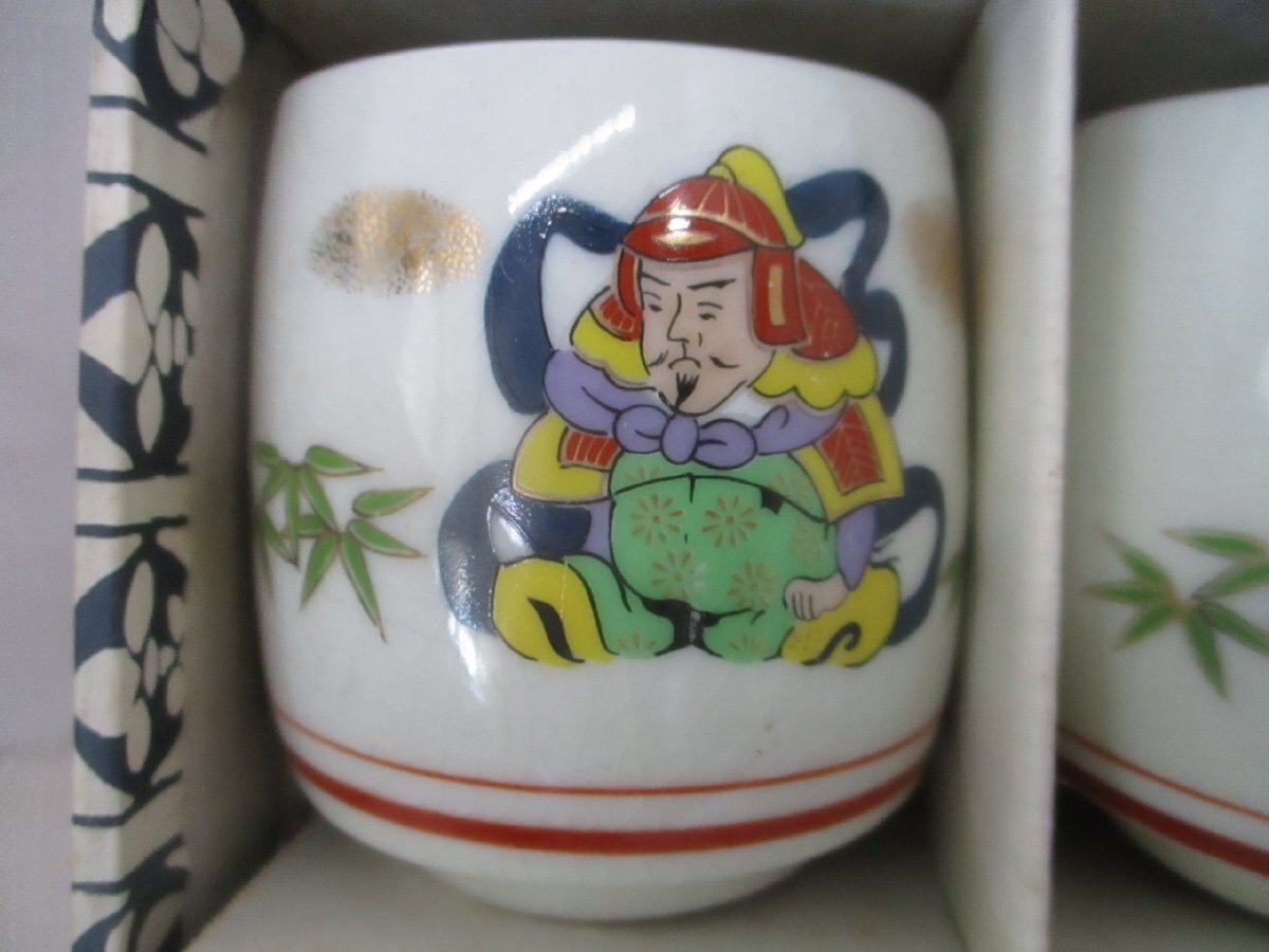 ★七福神 湯飲みセット★ サイズ φ6.3cm 高さ7cm 中古の為現状売りとさせていただきます。 ご不明な点がありましたらお気軽にお問い合わせください。 当社のオークションは返品・交換・キャンセル等は一切お断りさせて頂いております。充分ご検討の上ご入札下さいませ。 | |