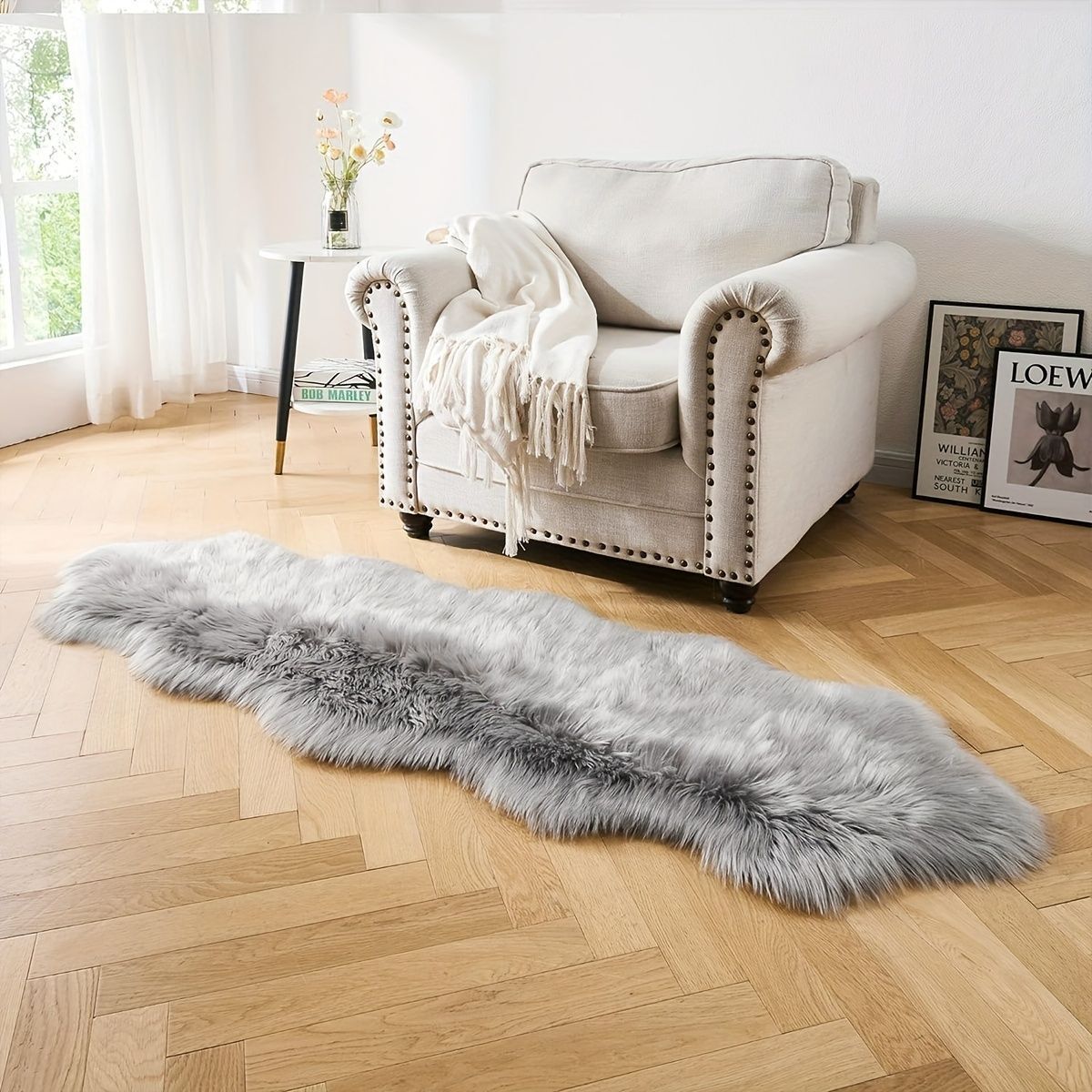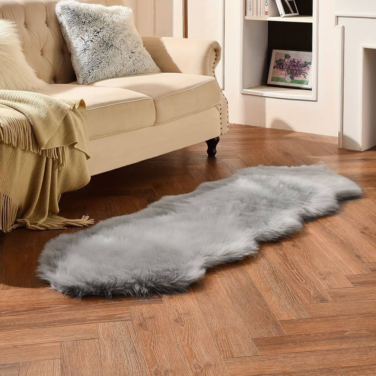 ラグマット カーペット グレー 60cm × 180cm ふわふわ ソファーカバー おしゃれ 可愛い 北欧 滑り止め付き 洗える 70mm フェイクムートン