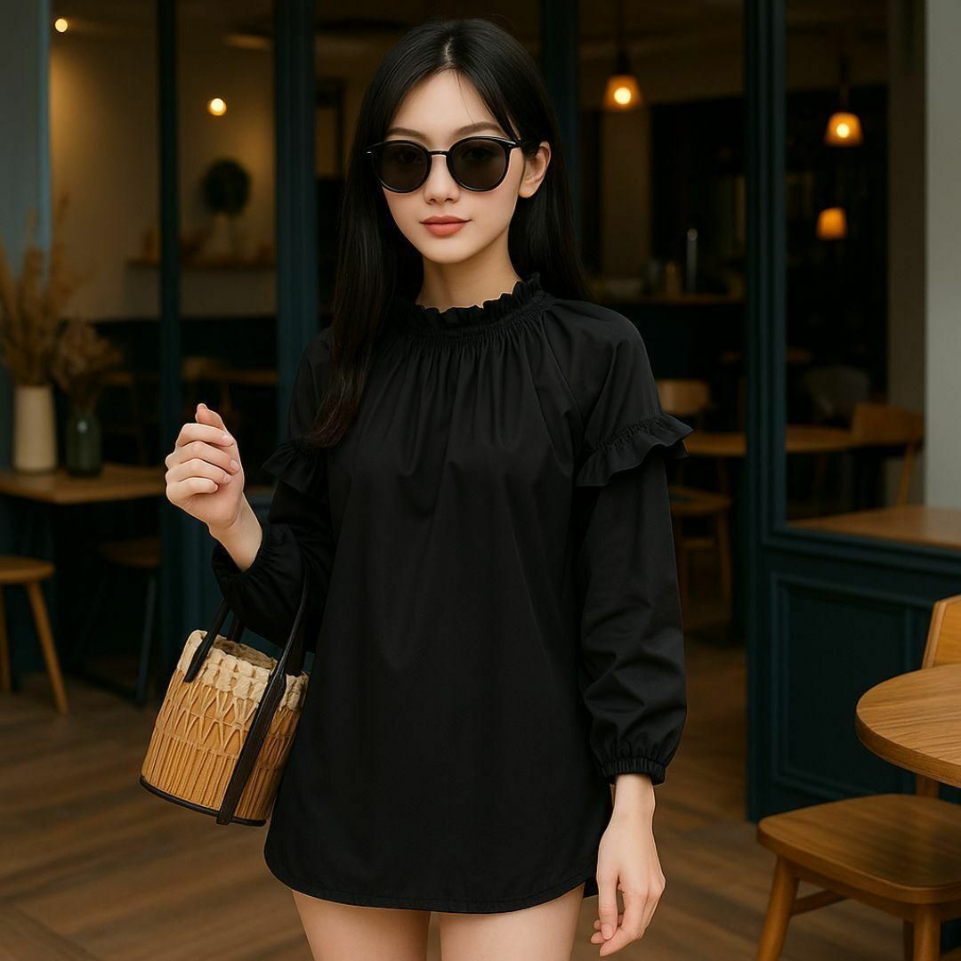 ◆水陸両用で使える!おしゃれなブラックの長袖チュニック◆