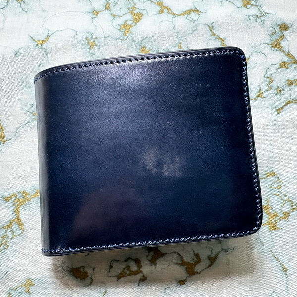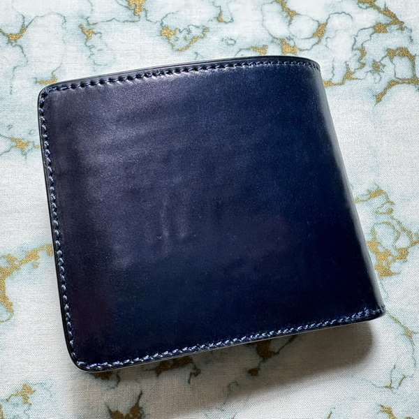 ホーウィン社シェルコードバン(ネイビー)×サドルレザー firebird【ジェルマン】2つ折りショート 総表革【BlackLabel】プレゼントにも!
