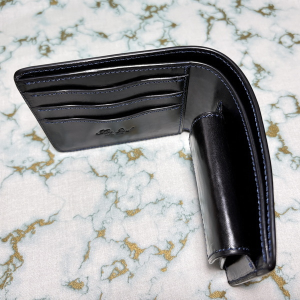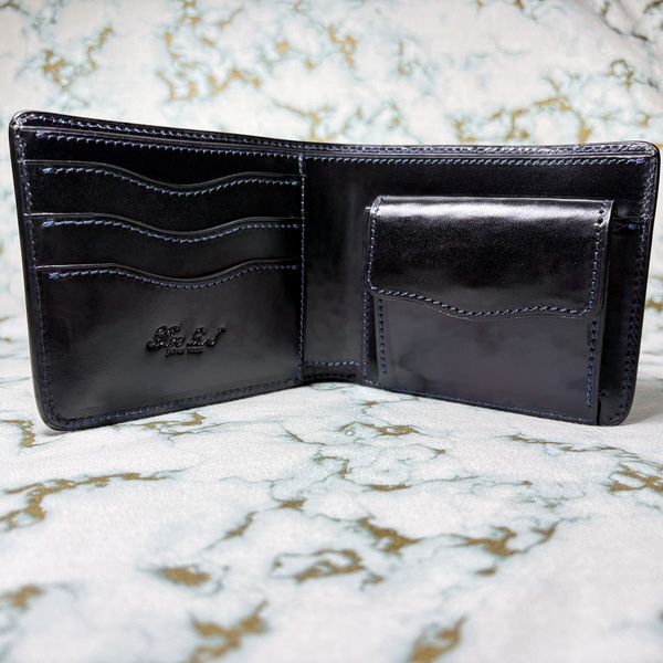 firebird【ジェルマン】2つ折りショート【BlackLabel】 ホーウィン社シェルコードバン(ネイビー)×サドルレザー