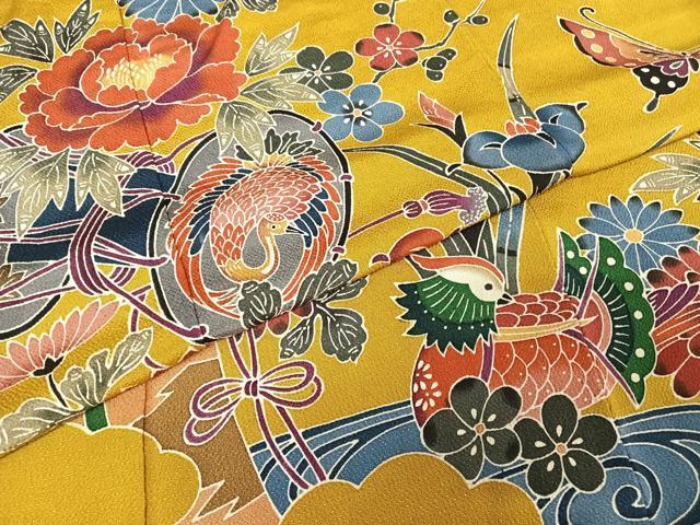 【正絹】 状態は特に目立ったシミ汚れなどもなく大変良い状態です。 紅型とは沖縄の伝統的な染物のことで、 型紙を使ったおおらかで自由な文様と、 南国らしい力強さがあふれる鮮やかな色彩が特徴的でございます。 「びん」は色、「かた」は模様のことを意味しており、 琉球王朝時代から、高貴な人々が身にまとったとされます。 創作工程の第一は、意匠を凝らした下絵を描き、 丁寧に型紙を彫ることから始まり、型紙を生地に伏せ、 糊で防染し、糊が置かれていない部分に手仕事で色を挿していきます。 染めた跡にまた糊を洗い落とし、今度は色を挿した部分に糊をおき、 残りを丹念に染めるという作業をコツコツと繰り返すことで 鮮やかな色彩が生まれていくのです。 大変上質な逸品になります。 お安く出品致しますので、是非この機会にいかがでしょうか? |