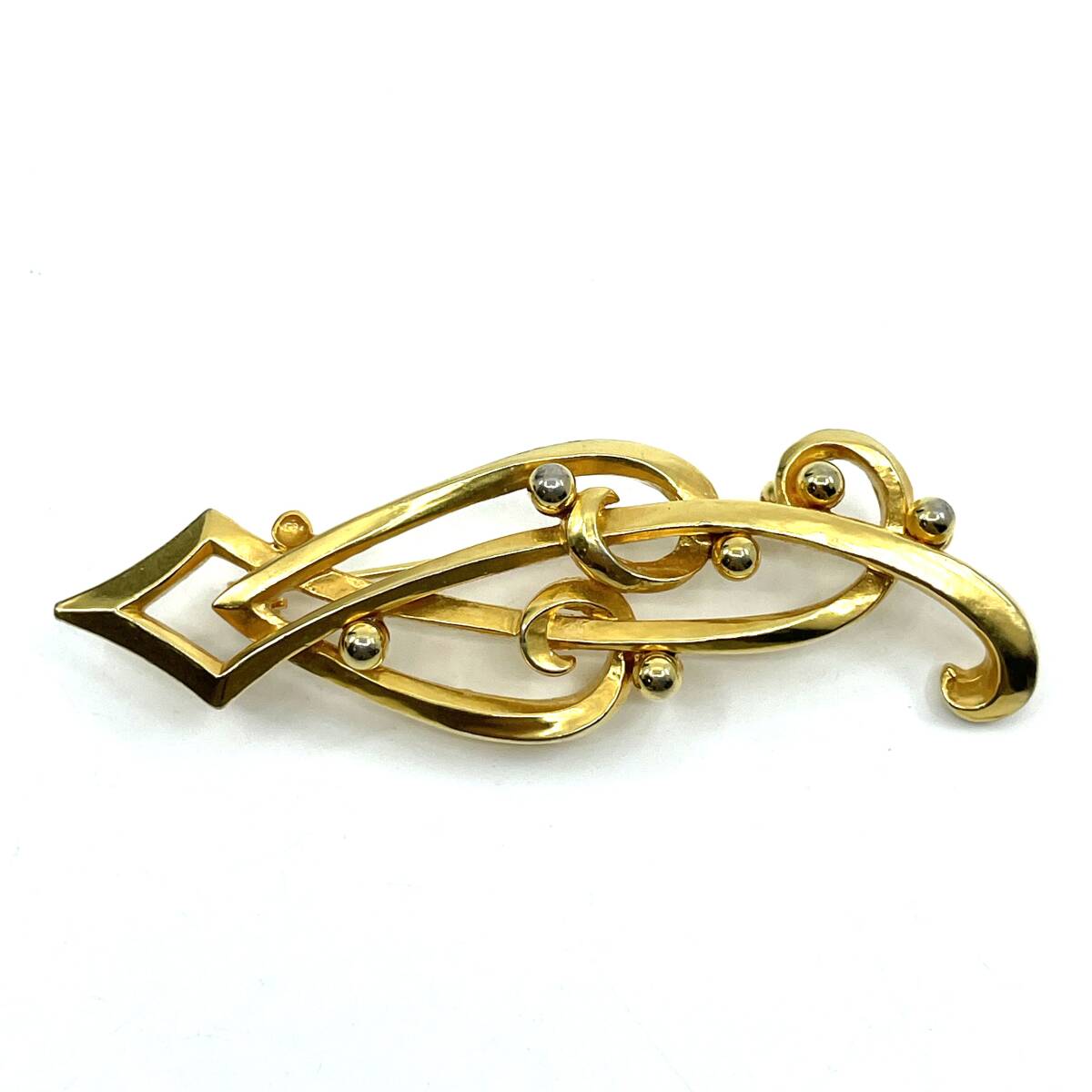 ゴールド ブローチ ウェーブデザイン ワンポイント  エレガント ラグジュアリー