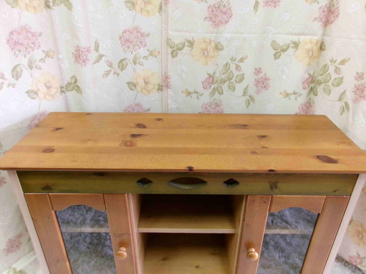 キャビネット パイン材ムク 巾90×高さ60cm 展示処分 完成品 収納庫 飾り台 小引出  木製 食器棚 天板はパイン材ムク