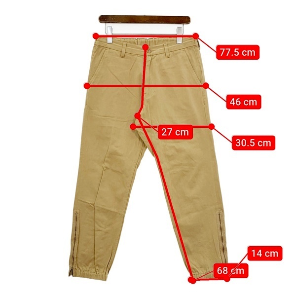 実寸法 | ボトムス実寸 ウエスト:77.5cm 股上:27cm 股下:68cm もも幅:30.5cm 裾幅:14cm |