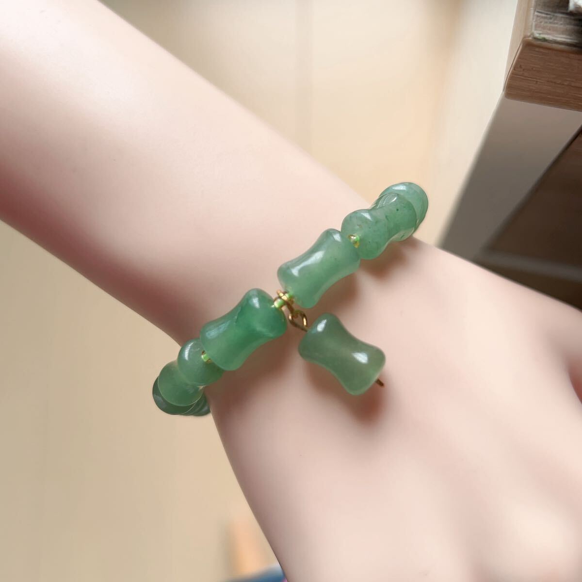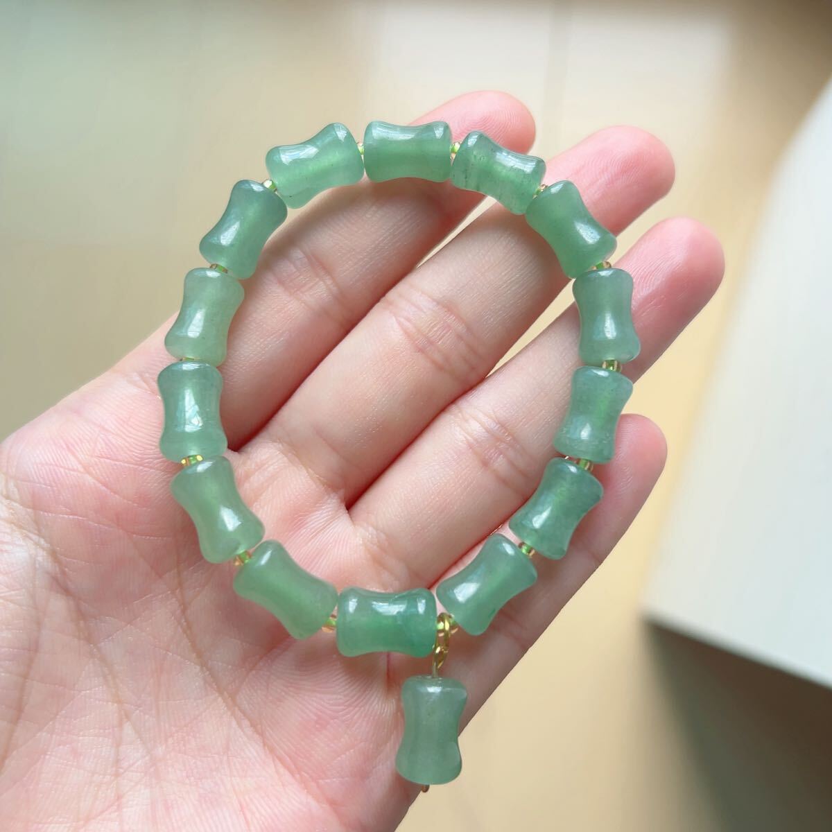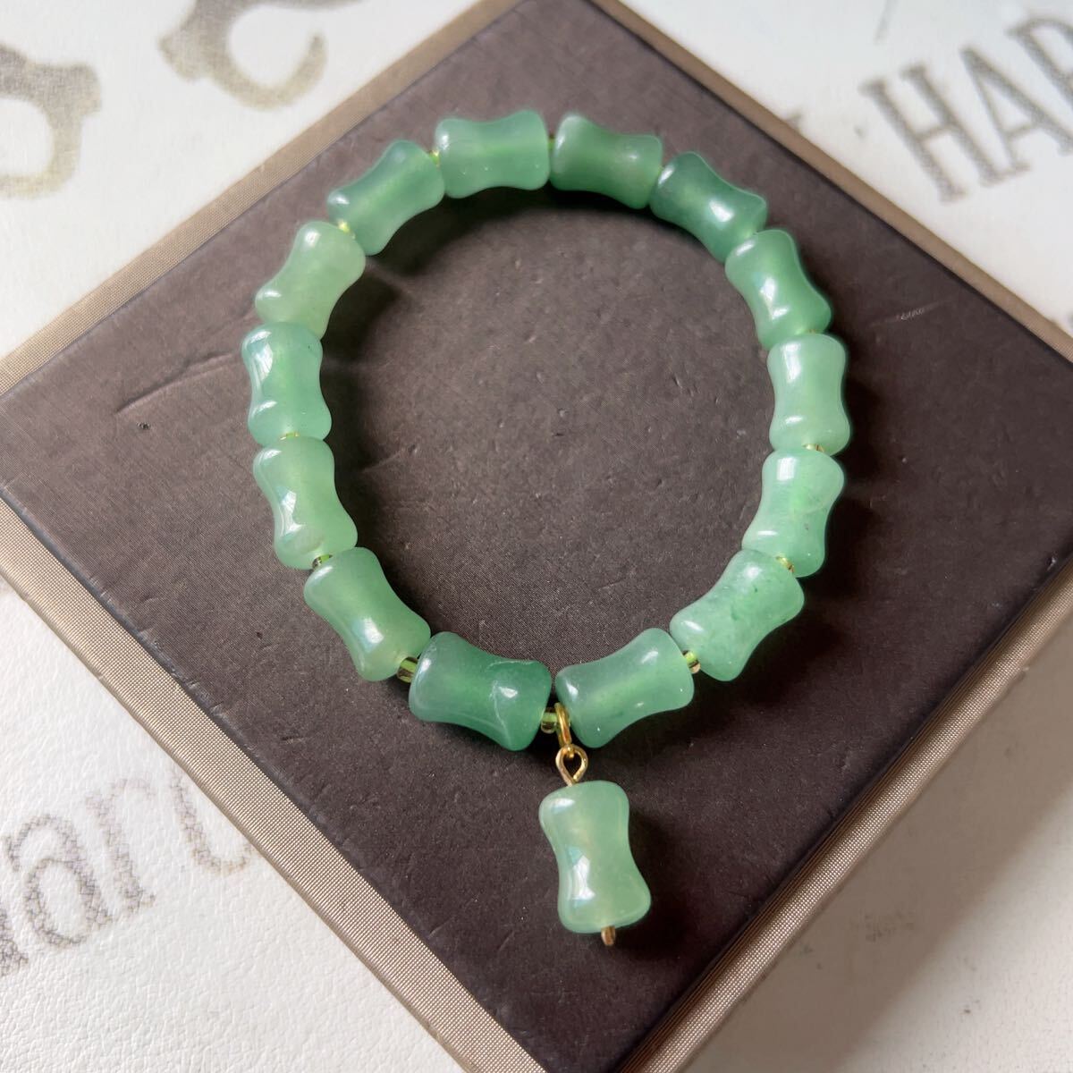 訳あり◇東陵玉◇ブレスレット◇竹の節形◇パワーストーン◇天然石◇翡翠・ヒスイ◇巾着袋付き◇プレゼントにも030B71115