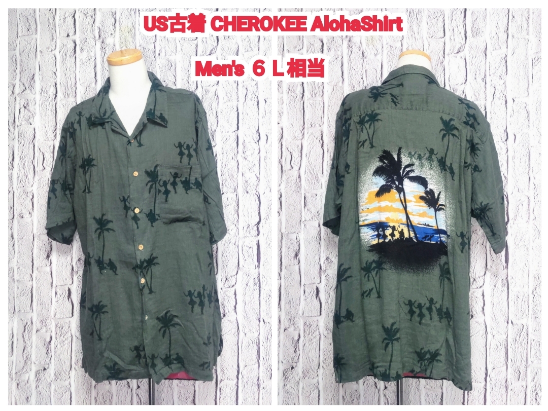★送料無料★ US古着 CHEROKEE アロハシャツ チェロキー アロハシャツ ハワイアンシャツ バックパネル フラガール 6L 相当