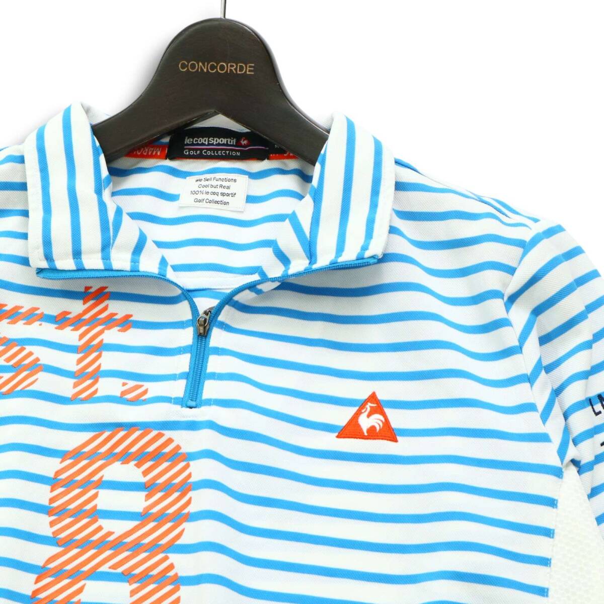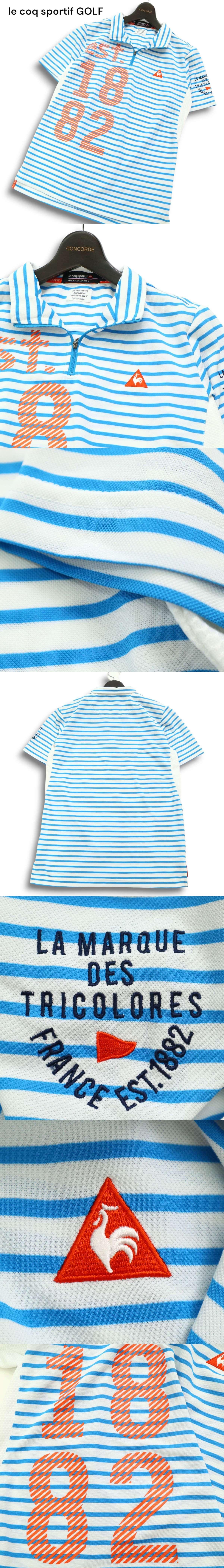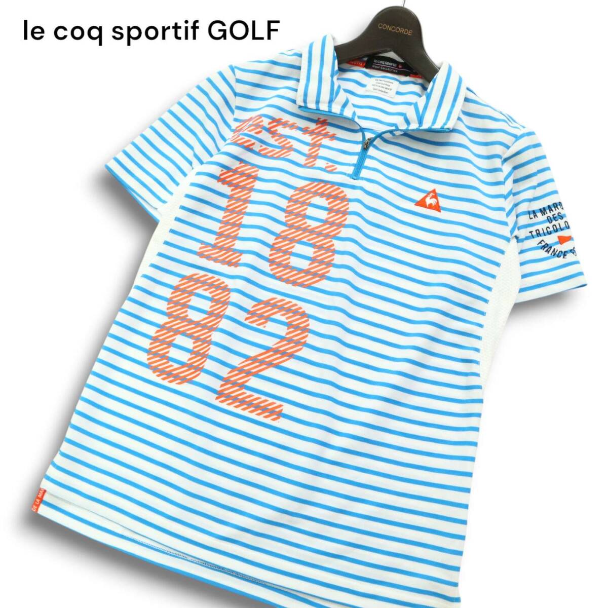 le coq sportif GOLF ルコック スポルティフ ゴルフ 春夏 ロゴ刺繍★ 半袖 ボーダー ハーフジップ ポロシャツ Sz.M メンズ