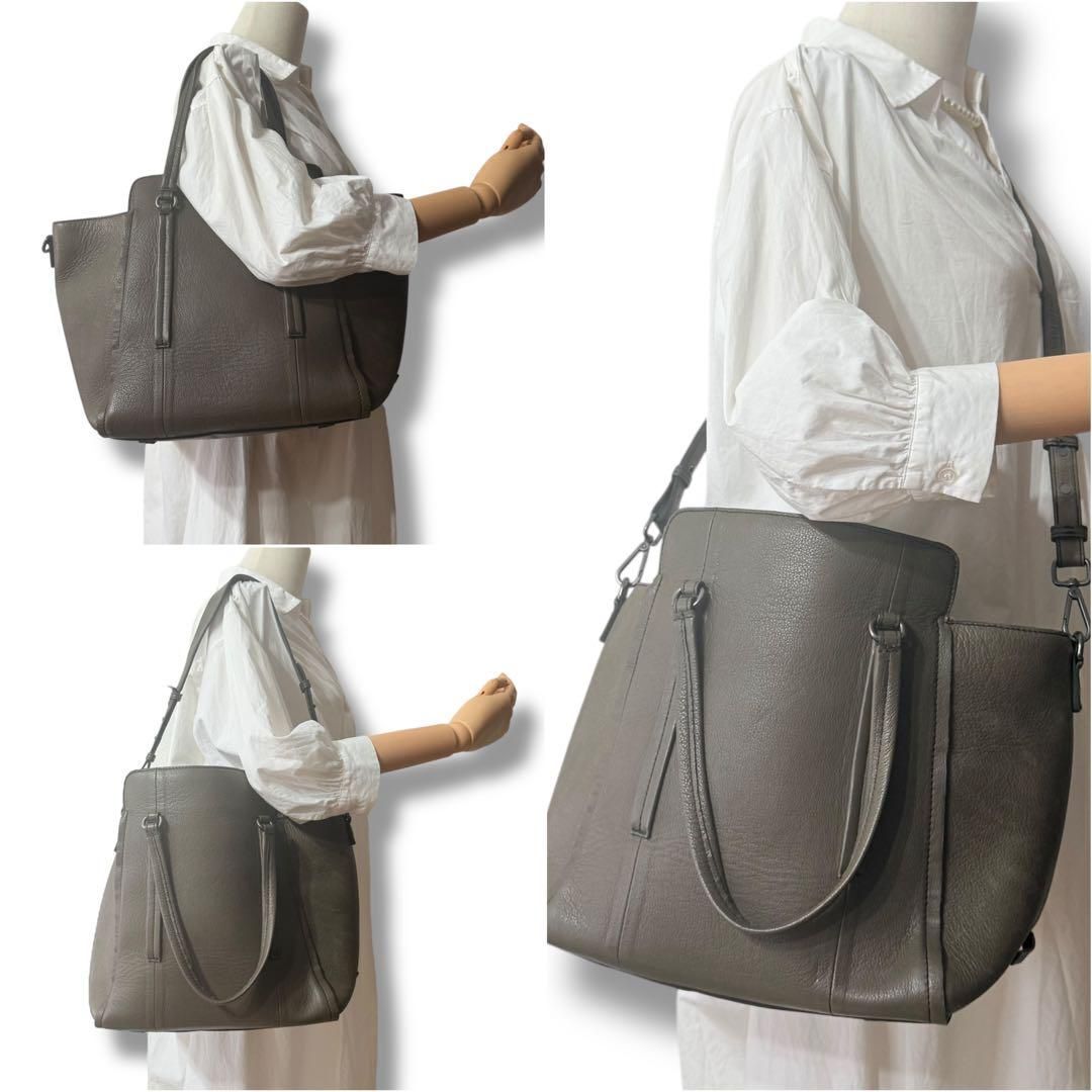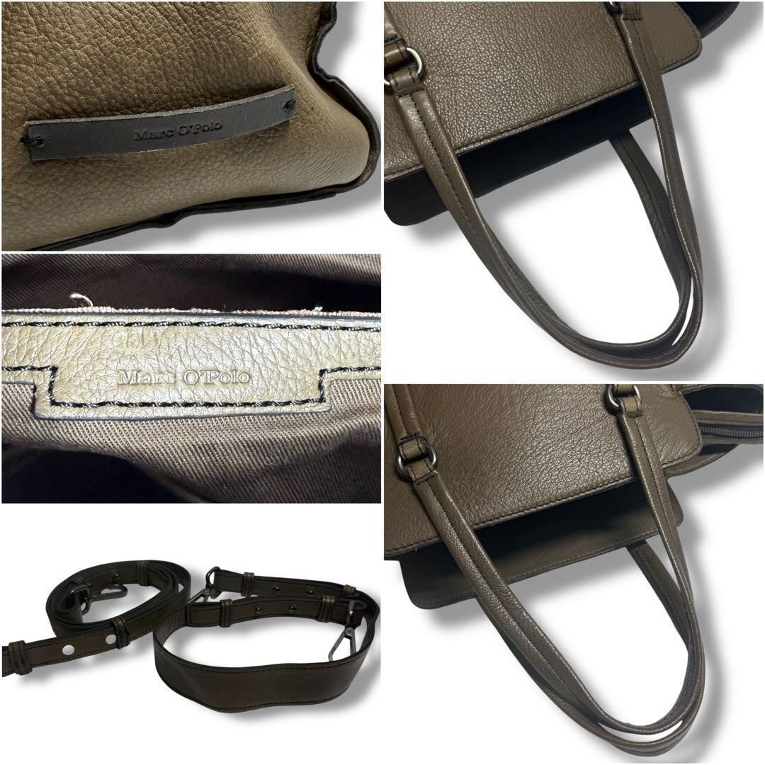 【極美品】Marc O'Polo マルコポーロ レザー 本革 3way ショルダーバッグ トートバッグ ワンショルダー 肩掛け A4 フォーマル カーキ S2860