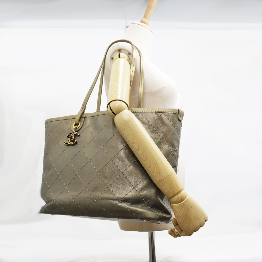【名東】シャネル オンザロード ゴールド トートバッグ ハンド 肩掛け ポーチなし キャビアスキン GD金具 レディース