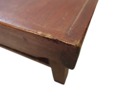 表面には経年による擦れや剥げ、傷、板の歪みなどが見られますが、それらもこの時代の家具特有の風合いとしてお楽しみいただけます。和の空間にはもちろん、ディスプレイ台としてもおすすめです。