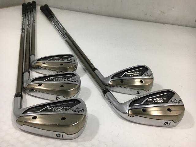 | ※アイアンセットのばら売り販売は行っておりません。 程度説明 N:新品 S:未使用品 A:芝やマットなどで出来た薄い跡のようなものが少し見られる程度の極上品。 AB:ソールに芝やマットなどで擦れた跡やフェースに打球痕が少しある程度の良品。 B+:フェースやソールに細かな擦り傷はあるが、目立つような大きな傷はなく、中間的な程度ランク B:細かなあたり傷や擦り傷がヘッド全体にあるが、目立つような大きな傷は少ない。 B-:細かなあたり傷や擦り傷がヘッド全体にあり、所々に目立つ傷もある。 C:ヘッド全体に目立つ傷が多数あるが、使用上は問題ないお買い得品。 | |||