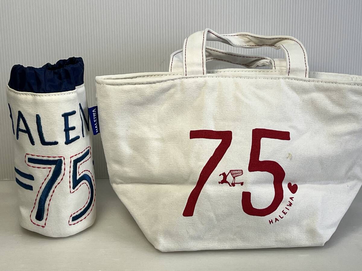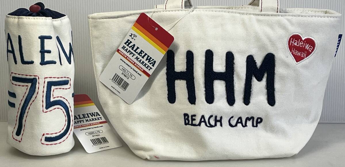2点セット!未使用品 HALEIWA ランチトートバッグ&ボトルカバーセット 帆布素材と刺繍ワッペン  (保冷タイプ)