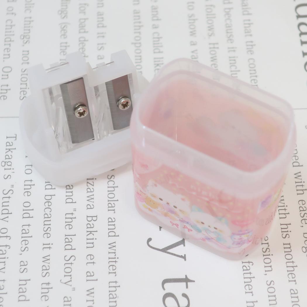 新学期に可愛い雑貨や文具で揃えちゃおう 新学期にぴったりな可愛らしいステーショナリーシリーズこちらはとっても可愛い[TWIN鉛筆削り]普通の黒鉛筆(硬い芯)と色鉛筆(やわらかい芯)の削りわけが出来るなのにミニサイズなので筆箱の中でもかさばらない同シリーズの文房具いろいろあるのでお気に入りで揃えちゃおうサイズ:約40x50x26mm[Made in Japan]