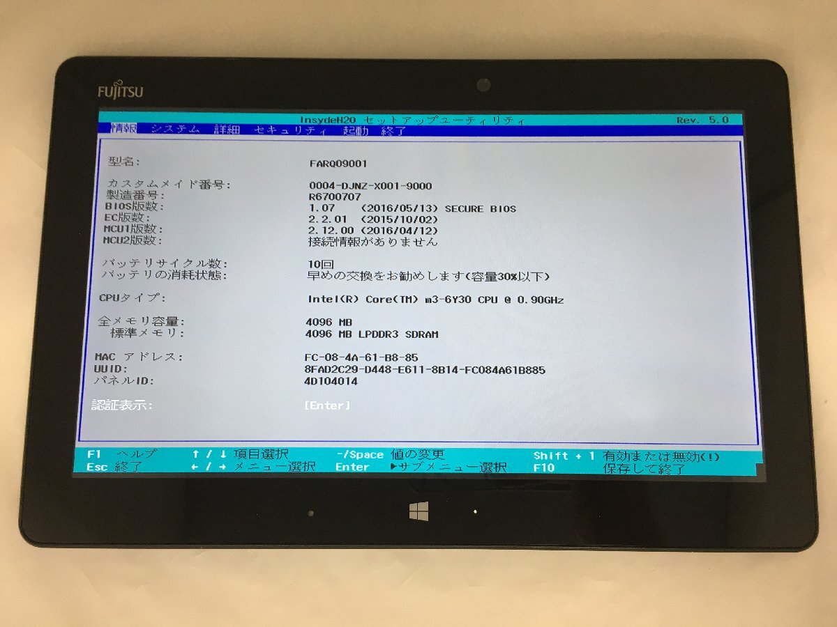 ジャンク3台セット/FUJITSU ARROWS Tab Q616/Core M3-6Y30 0.90GHz/128GB/4GB/11.6インチ/OS無し/高解像度/AC欠品【K18722】
