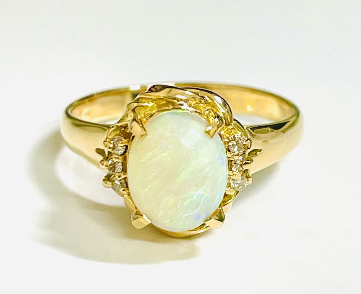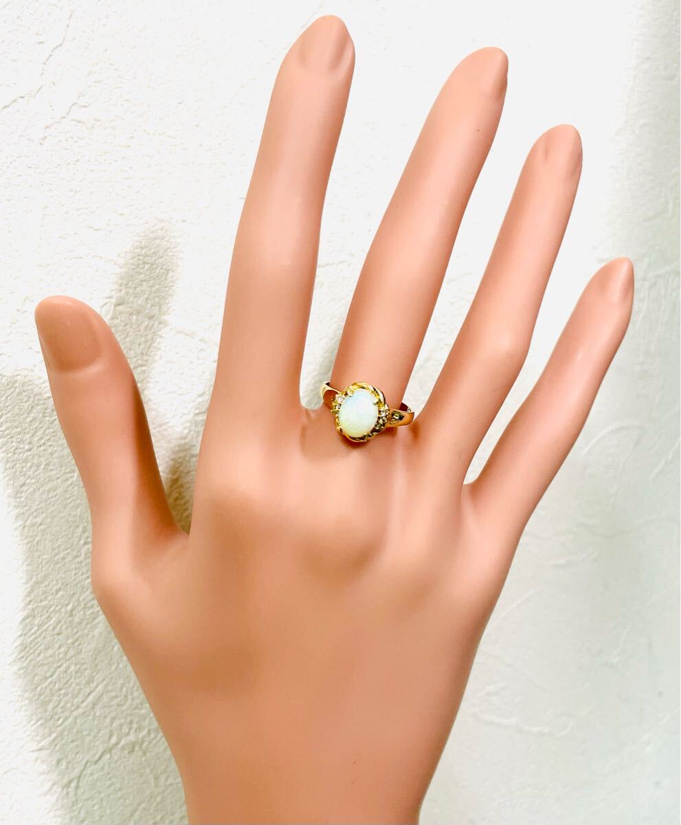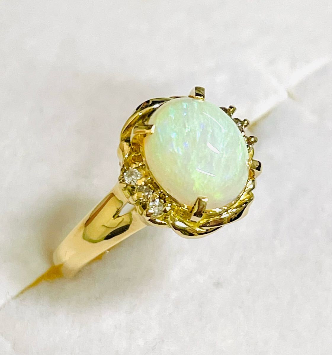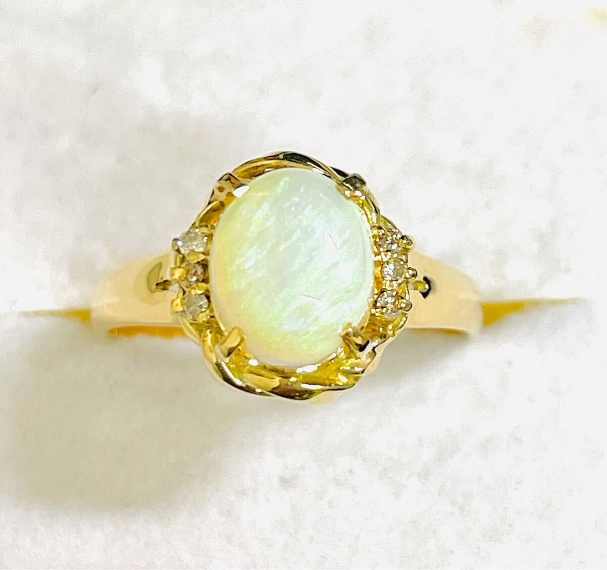 こちらは、K18台にオパール1石&ダイヤ6石付きリングです。