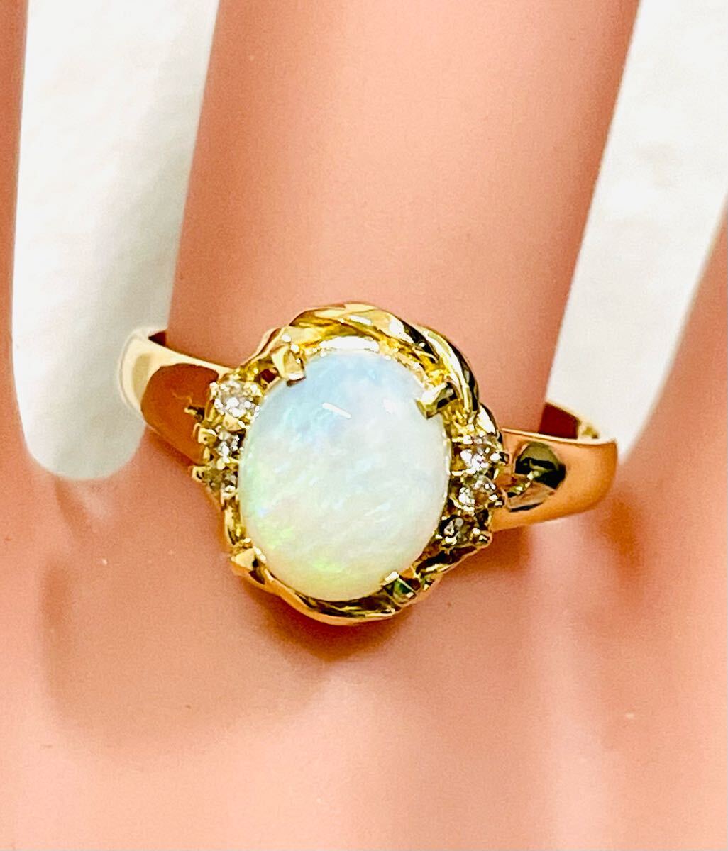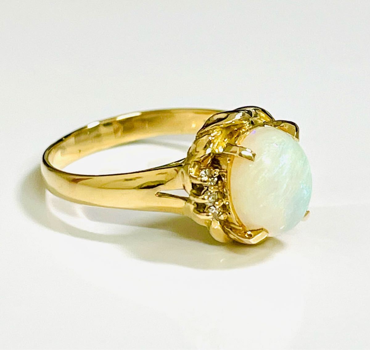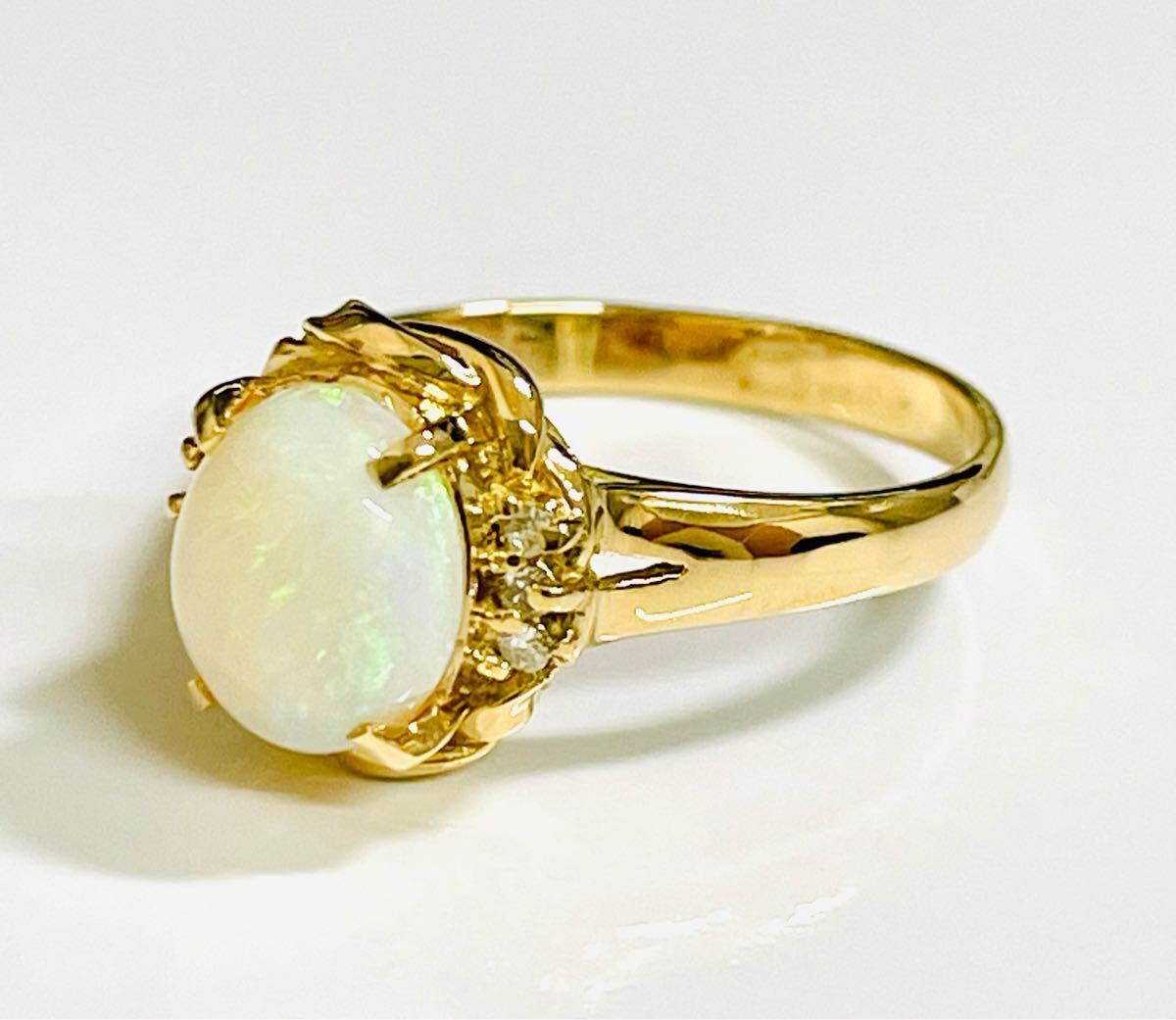 こちらは、K18台にオパール1石&ダイヤ6石付きリングです。
