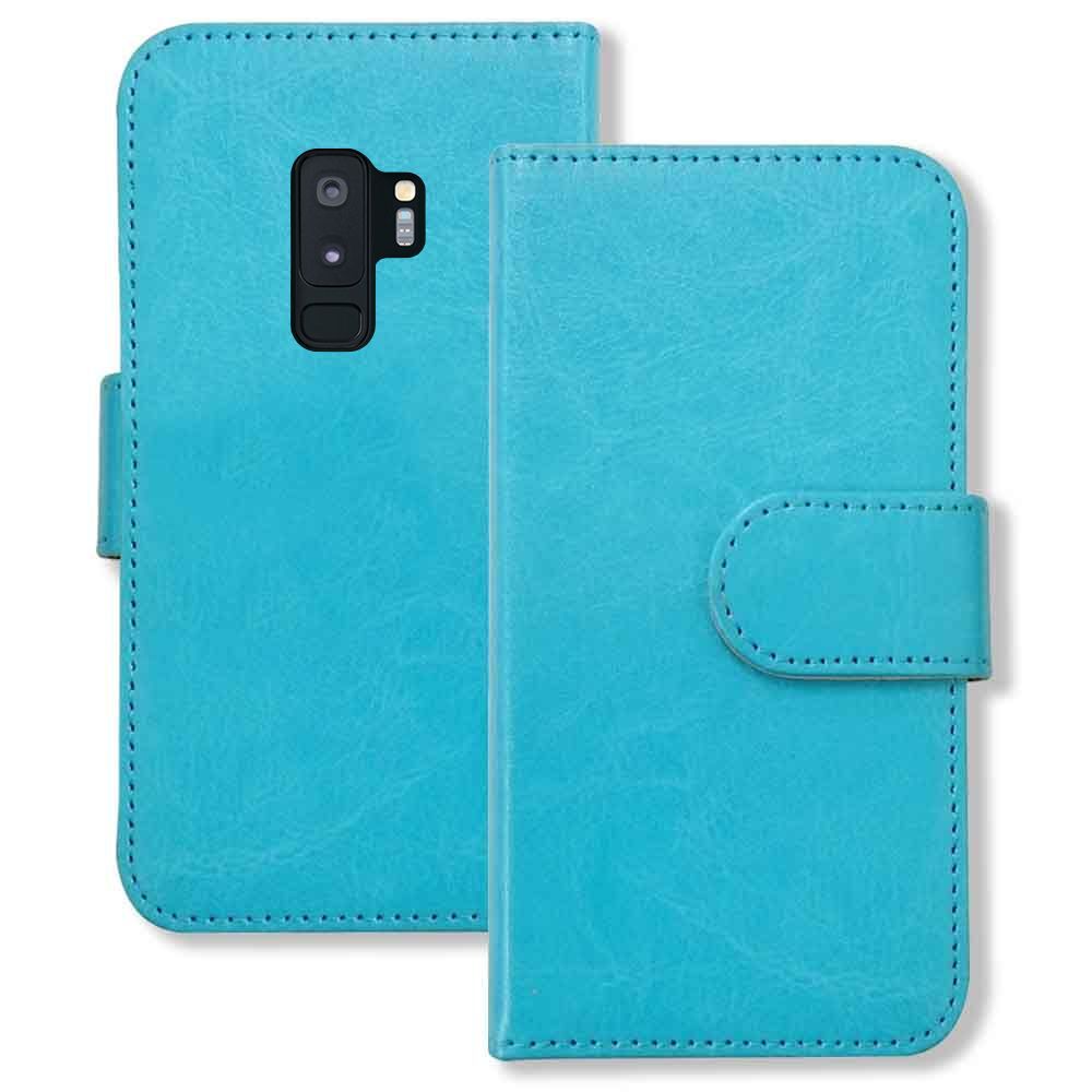 Galaxy S9+ SC-03K/SCV39 ギャラクシーS9+ スマホケース(手帳ブルー)手帳型 PUレザー 無地 ケース ダイアリータイプ 横開き カード収納 カバー