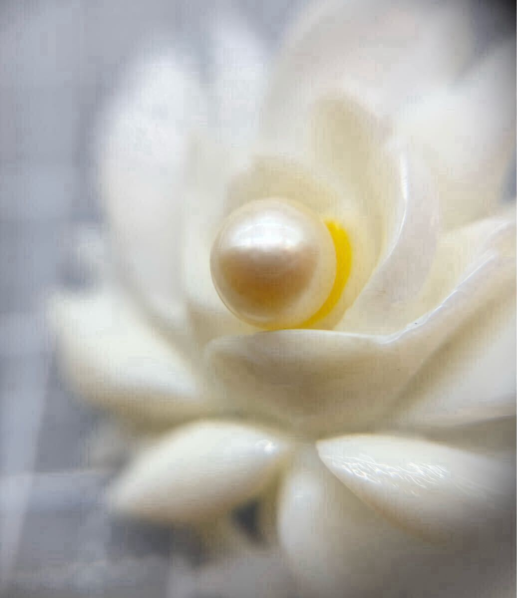 中心には照りの良いパールがセットされ、立体感がありその存在感は抜群です。