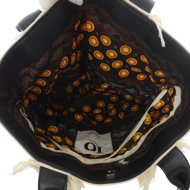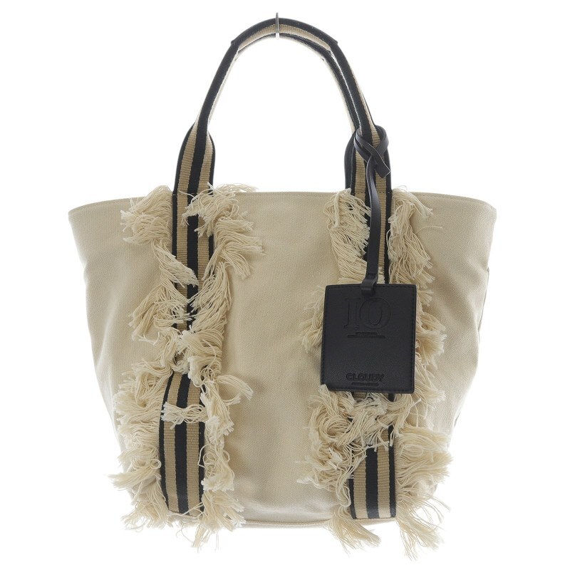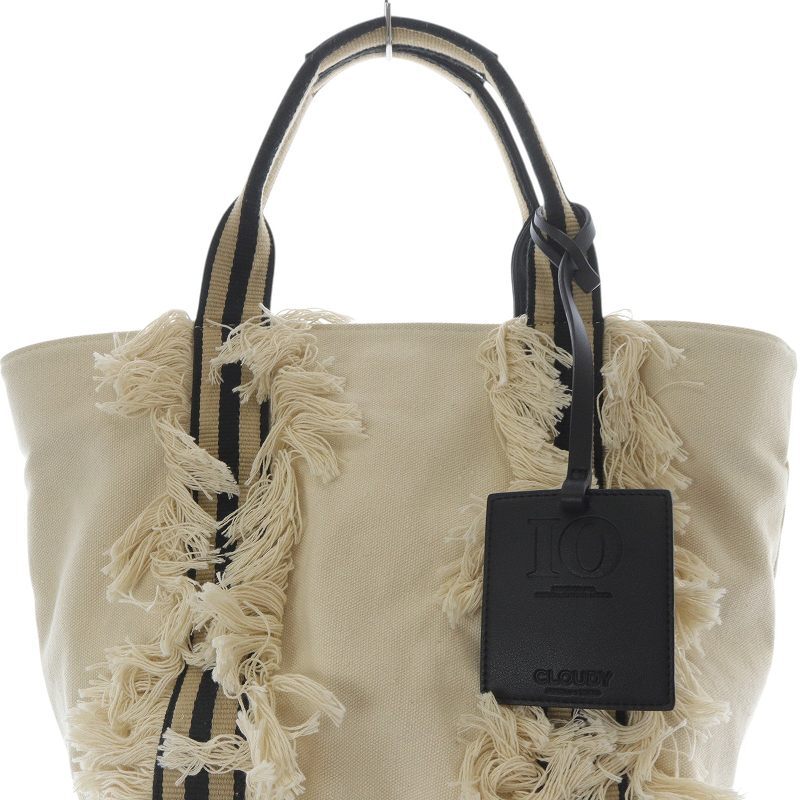 クラウディ CLOUDY TOKYO キャンバス フリンジ トートバッグ ハンドバッグ ベージュ 黒 ブラック /SR28 レディース
