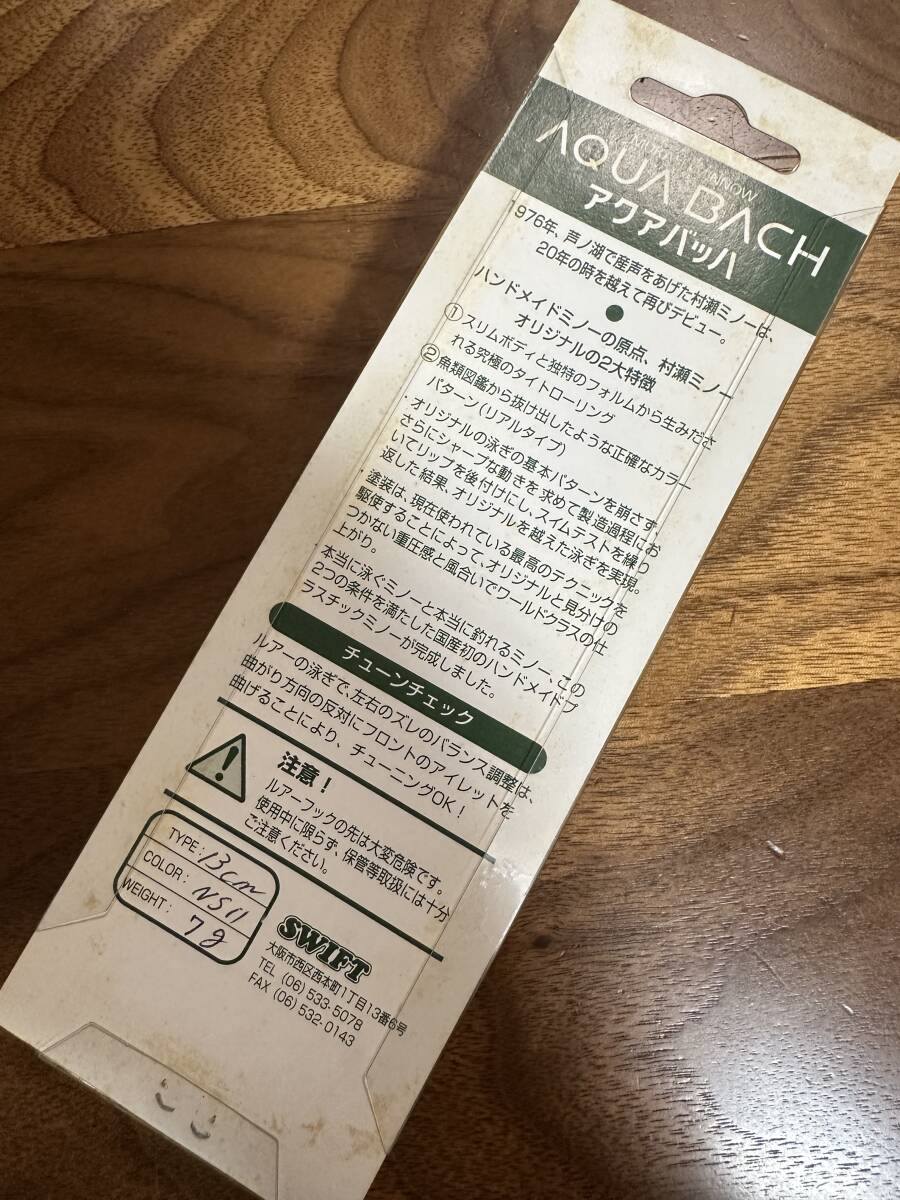 商品説明 | ショップ限定 ムラセミノー アクアバッハ 13cm チャート です。 村瀬さんご自身によるカスタム品でおそらくワンショットの製作だと思います。 |