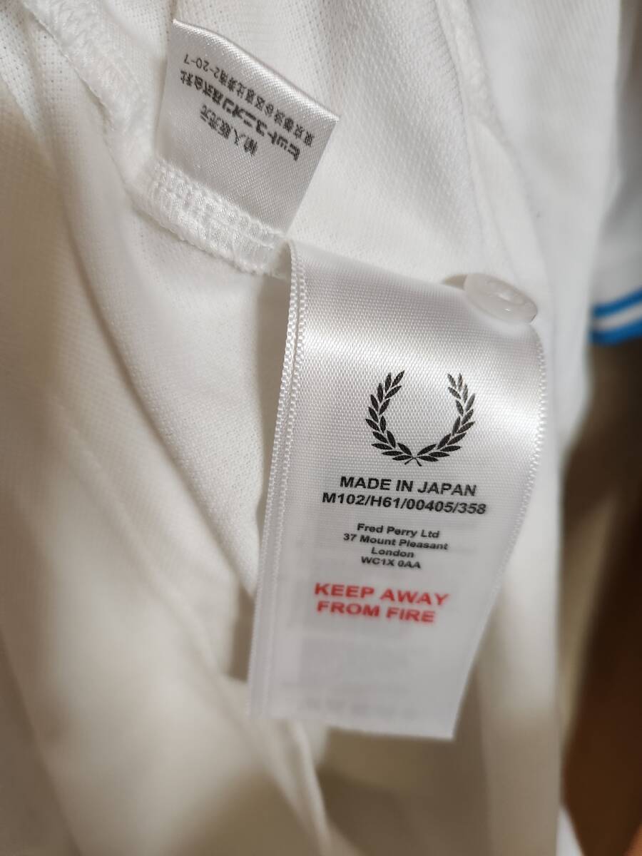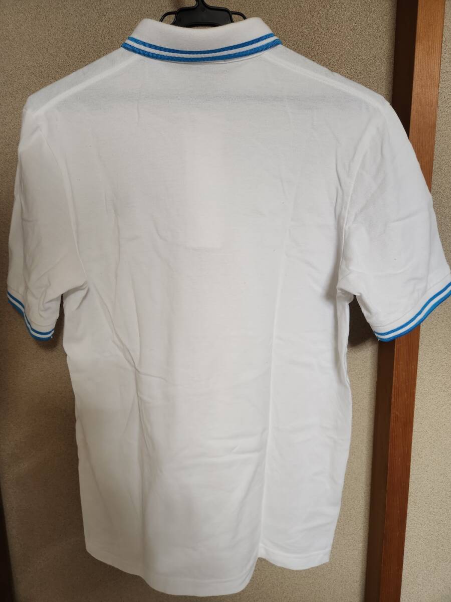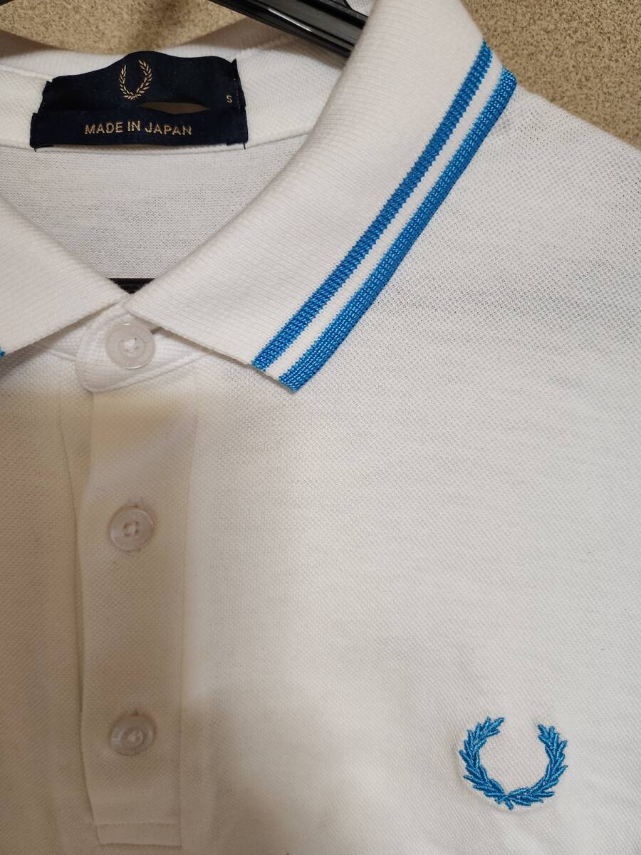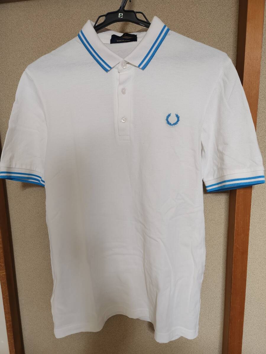 古着 フレッドペリー メンズポロシャツ 白 + 水色ロゴ ストライプ 鹿の子 M102 日本企画 肌触りのよい生地感 送料込み