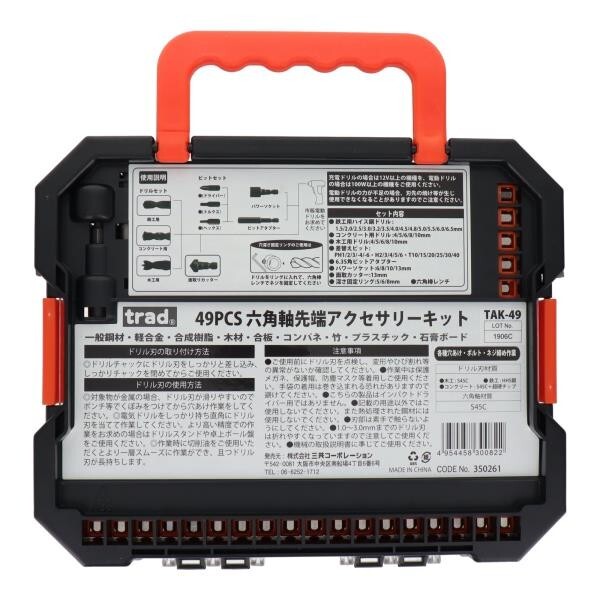 【優れた先端パーツの総合キット!各種穴あけ・ボルト・ネジ締め作業に】trad 49PCS 六角軸先端アクセサリーキット TAK-49 ※350261