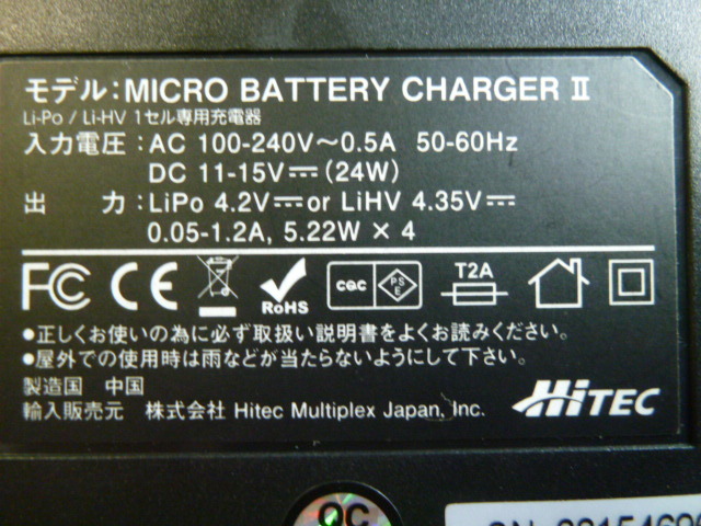 1S専用 充電器 Li-Po Li-HV 1セル HITEC ハイテック マイクロ バッテリー チャージャーⅡ ヘリコプター ドローン MiniCP K110S V120D02S 等
