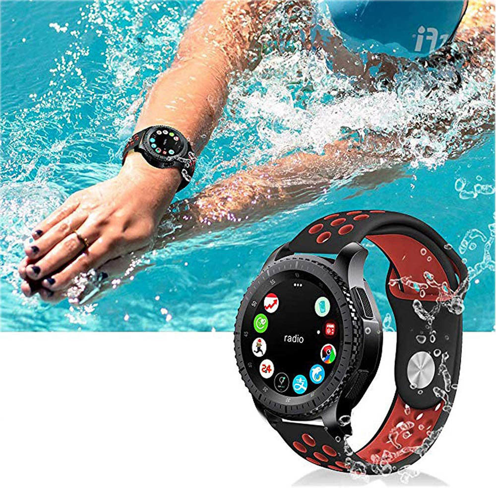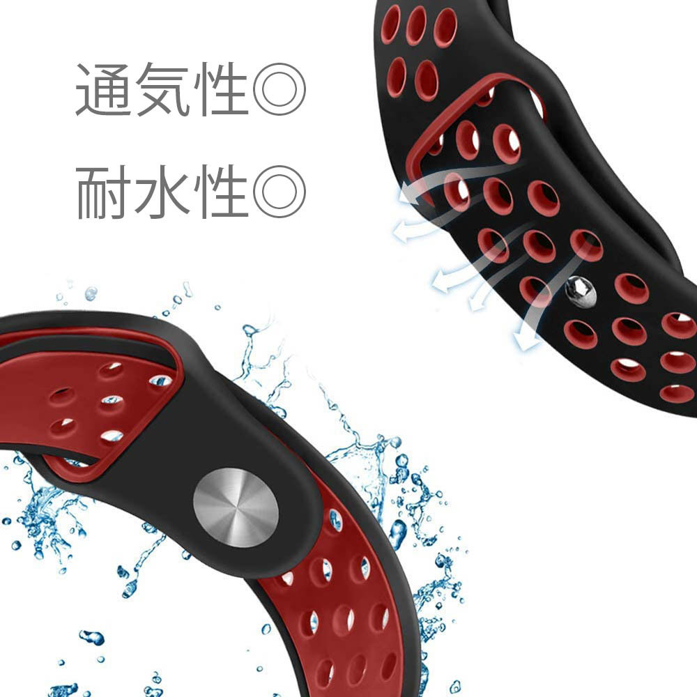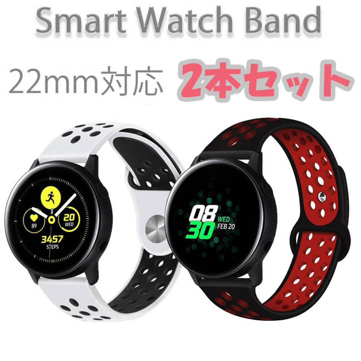 スマートウォッチバンド 2本セット おしゃれ 22mm 穴あき 黒 白 赤 バイカラー シリコン 替えバンド スポーツ 時計バンド 交換用 人気 安い