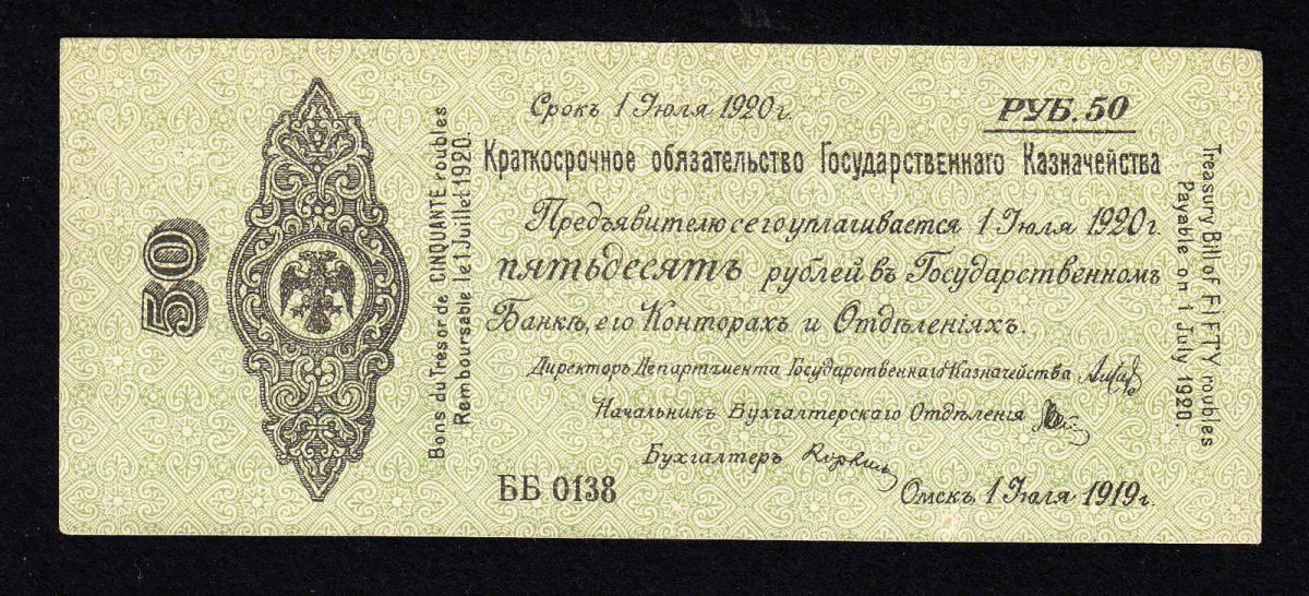*[令]Pick#S856/ロシア紙幣 第二シベリア政府 50ルーブル(1919)ソビエト連邦、ソ連[2330]7n1